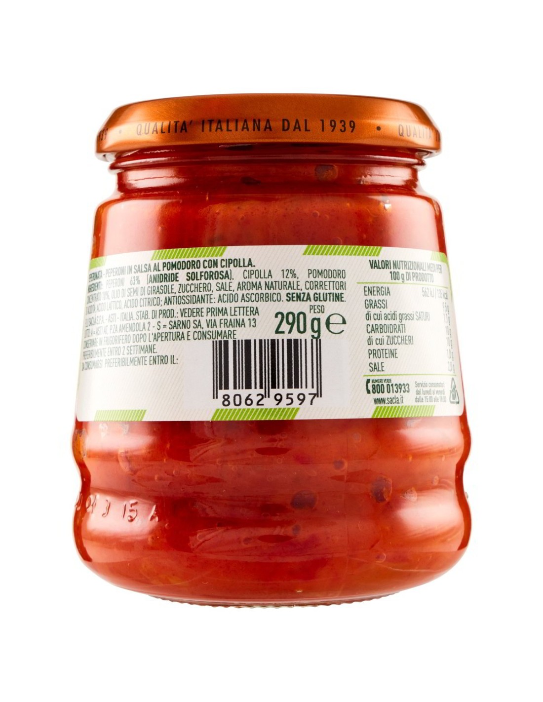 Die wahre Essenz der Küche: eine fertige Beilage, die Paprika, Tomaten und Zwiebeln vereint. Ideal, um Ihre Gerichte zu bereichern mit Geschmack und Einfachheit. Glutenfrei.