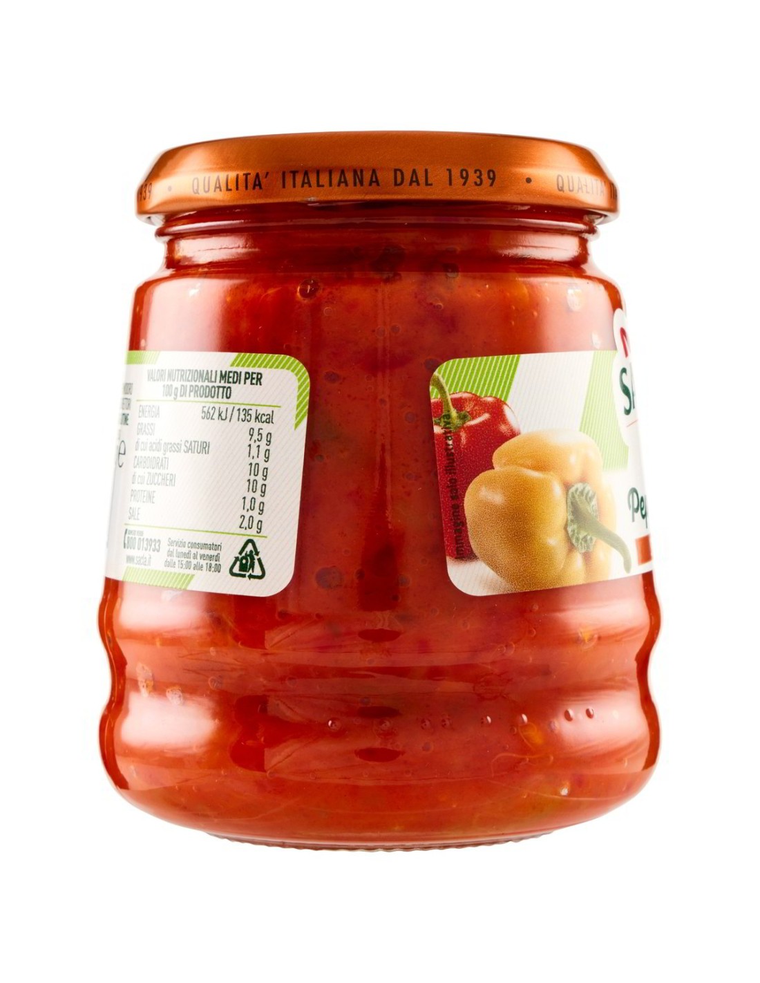 Holen Sie sich diesen zeitlosen Klassiker auf den Tisch. Eine schmackhafte Mischung, die perfekt als Beilage zu gebratenem Fleisch oder als vielseitige Zutat für Bruschetta und rustikale Pizzen dient. Die ausgewogene Rezeptur mit 63% Paprika garantiert einen intensiven und echten Geschmack. Die Zubereitung ist auf höchste Praktikabilität ausgelegt, ohne dabei auf Qualität zu verzichten. Zudem ist das Produkt glutenfrei und somit für verschiedene Ernährungsbedürfnisse geeignet. Fügen Sie diesen kulinarischen Allrounder sofort Ihrem Online-Einkauf hinzu!