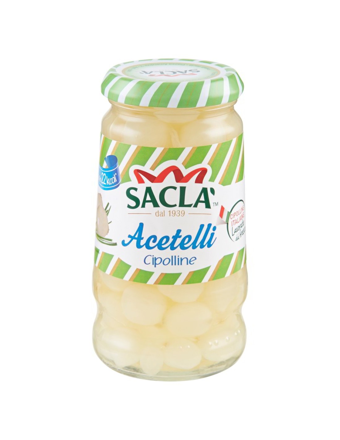 Saclà, 1939 in Asti gegründet, hat die Auswahl italienischer Rohstoffe zu seiner Stärke gemacht. Die Zwiebeln der Acetelli-Linie werden frisch verarbeitet — eine Wahl, die den Unterschied macht: der Biss bleibt fest, der Geschmack bleibt unverfälscht und der Weinessig wertet auf, ohne zu überlagern. 🌿