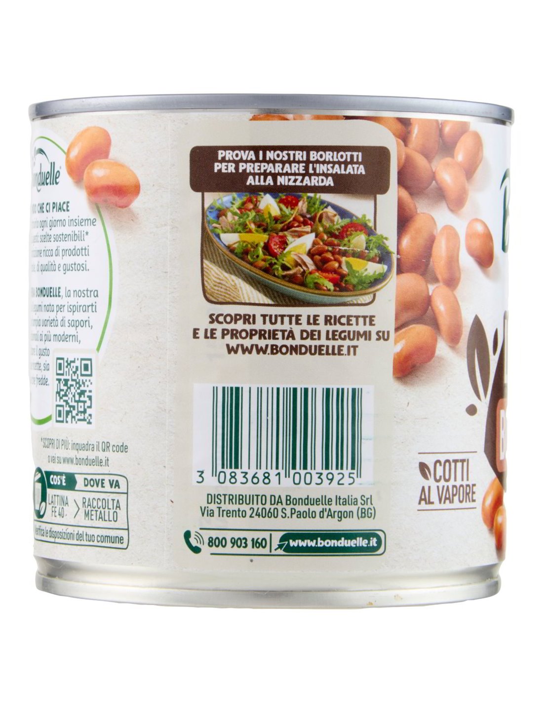 Borlotti Bonduelle 310g sind braune Bohnen dampfgart, ideal für schnelle nährstoffreiche Gerichte. Reich an pflanzlichem Protein, passen sie zu Saucen, Suppen und Salaten für gesundes Essen in Minuten.