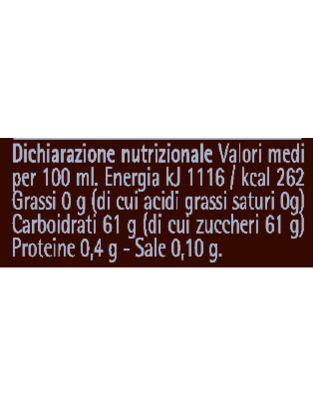 Nährwerte: pro 100ml: Energie 1445 kJ / 339 kcal, Fett 0g, davon gesättigte Fettsäuren 0g, Kohlenhydrate 78g, davon Zucker 78g, Eiweiß 1.3g, Salz 0.12g.