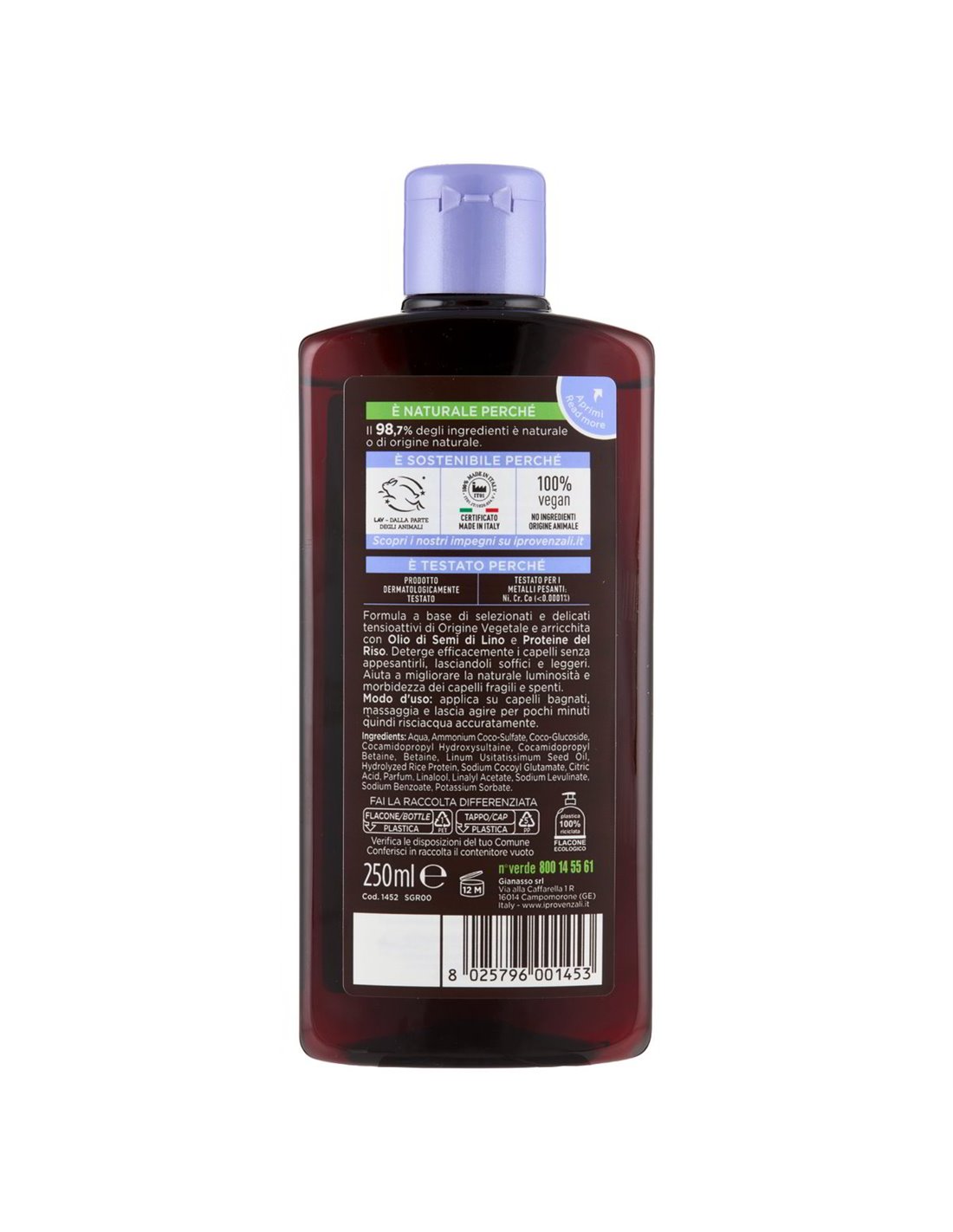 ✨ 98,9% Natürlichkeit, 100% vegan, tierversuchsfrei und Made in Italy: eine ethische Wahl, die sich auf Ihrem Kopf und im Respekt für den Planeten bemerkbar macht.