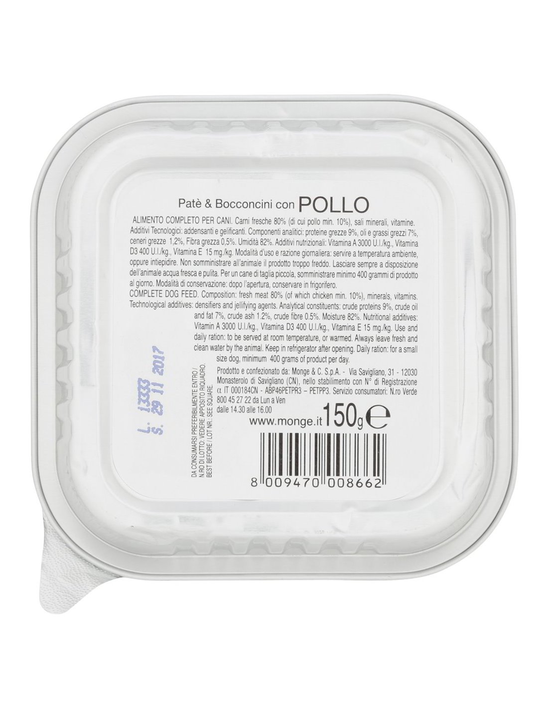 🍳 Special Dog Fresh Paté und Häppchen mit Huhn von Monge ist ein komplettes Nassaliment für erwachsene Hunde, formuliert, um ausgewogene Ernährung und einen wirklich unwiderstehlichen Geschmack zu bieten. Das frische Hühnerfleisch — ausgewählt und in Italien verarbeitet — ist der absolute Hauptdarsteller eines Rezepts, das die Bedürfnisse von Hunden kleiner Rassen erfüllt und als belohnende Leckerei für größere Hunde dient.