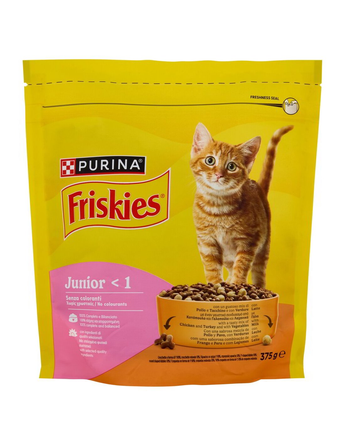 🔥 Friskies Junior Kroketten sind in zwei Formen erhältlich: 90% Y-förmig (mit Huhn, Pute, Gemüse und Milch) und 10% rund, um Abwechslung in jedem Napf zu bieten. Ohne Zusatz von künstlichen Farbstoffen, Aromen oder Konservierungsstoffen.