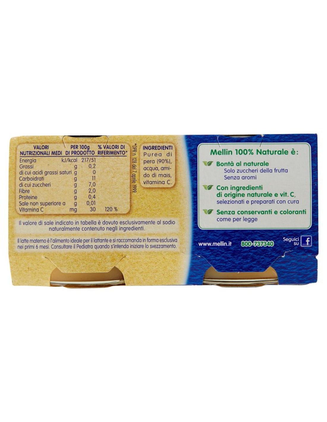 🔥 Das PRECINUTRI™ Programm von Mellin garantiert über 40.000 Kontrollen pro Jahr für jedes Produkt der Linie, damit Sie sicher sein können, dass das, was Sie Ihrem Baby anbieten, sicher, ausgewogen und von höchster Qualität ist. Jedes Glas ist zur besseren Erhaltung der Nährwerte der Birne vakuumiert und in Glas verpackt.