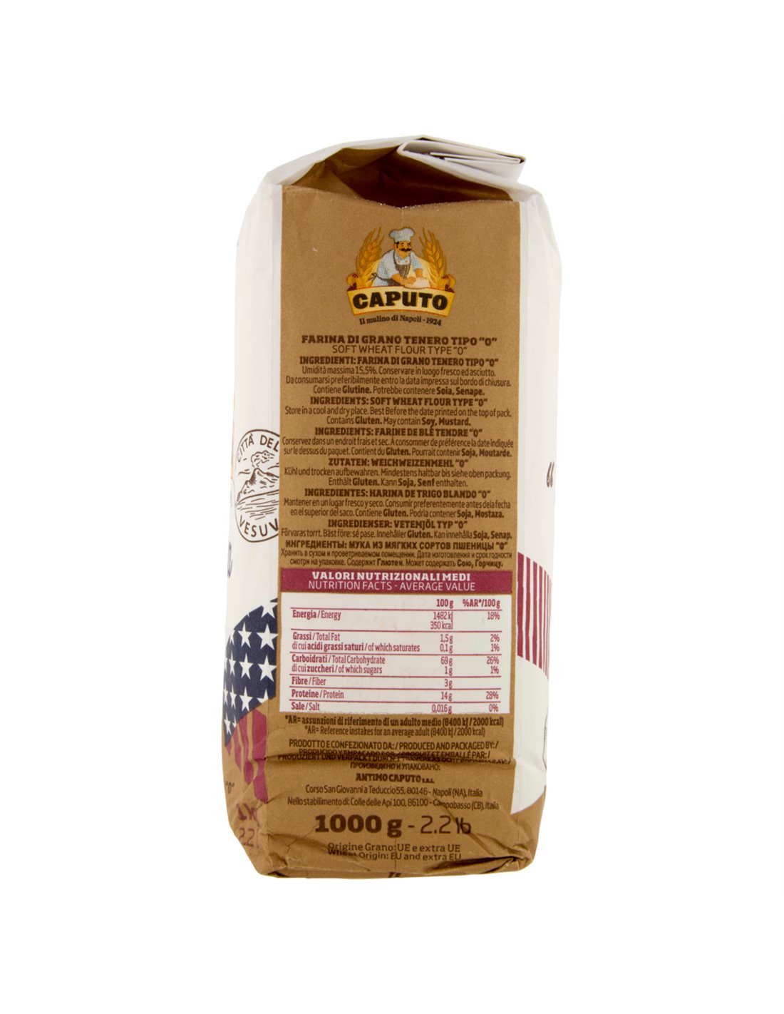 Zutaten: Weichweizenmehl Typ "0". Enthält Gluten. Kann Spuren von Soja und Senf enthalten.