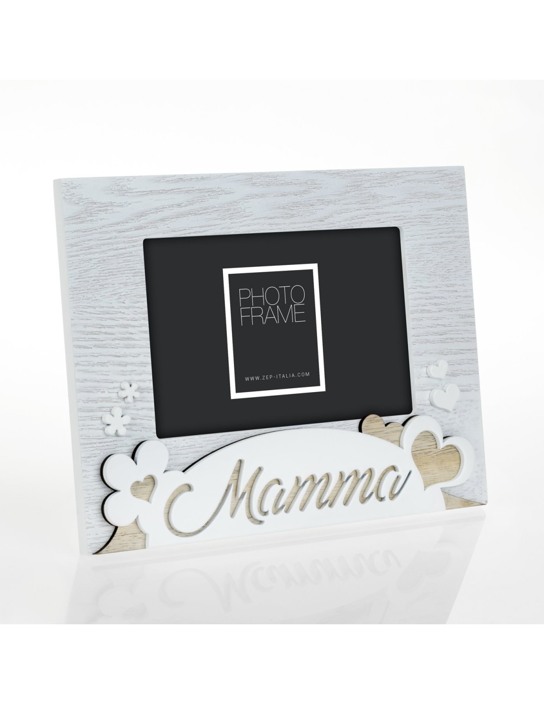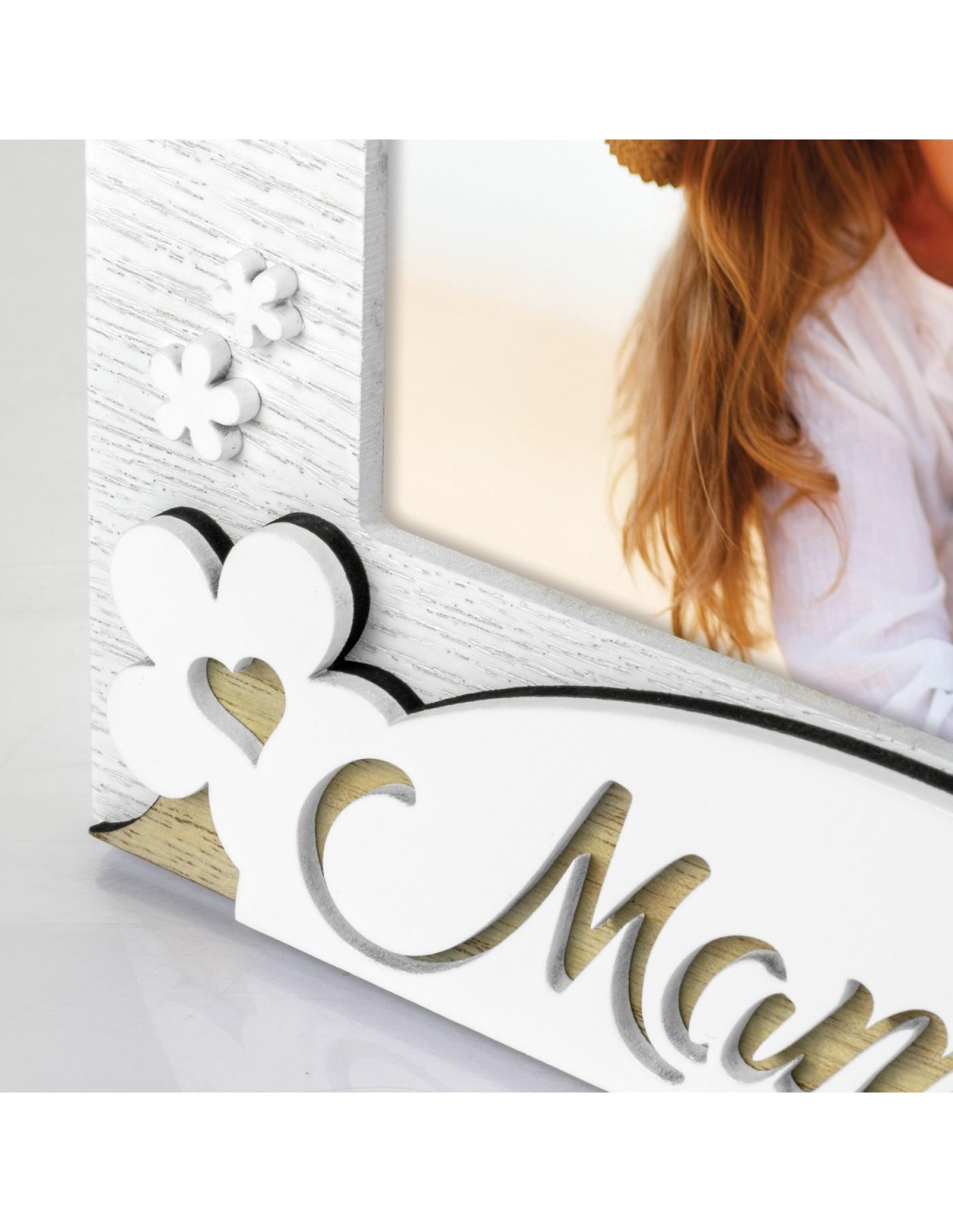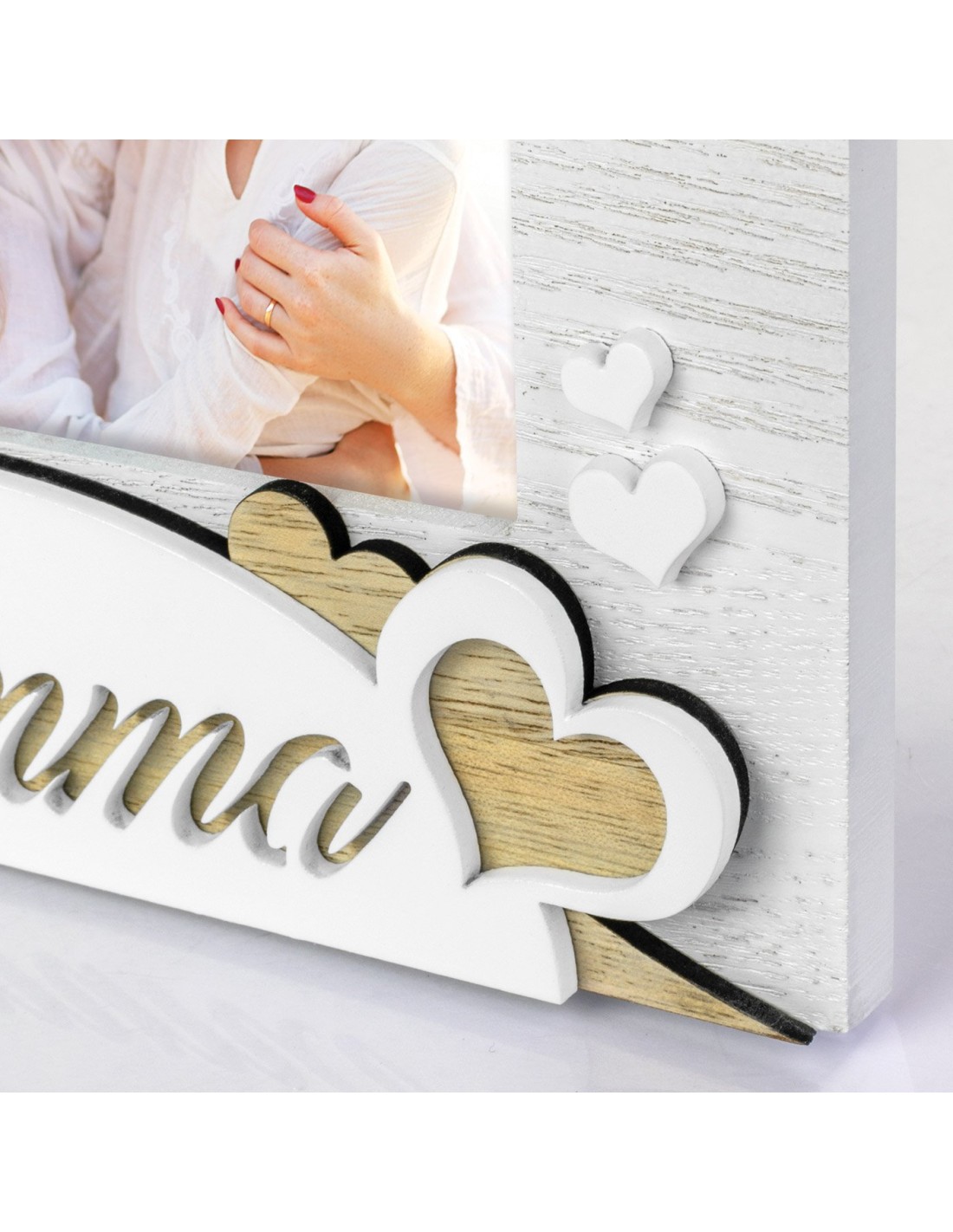 Cornice Donatella in legno, colore bianco, con scritta MAMMA traforata e decori a rilievo a forma di cuori e fiori in 3D, da tavolo, adatta come regalo per la festa della mamma, ideale per celebrare anniversari o compleanni, adatta per casa e ufficio.