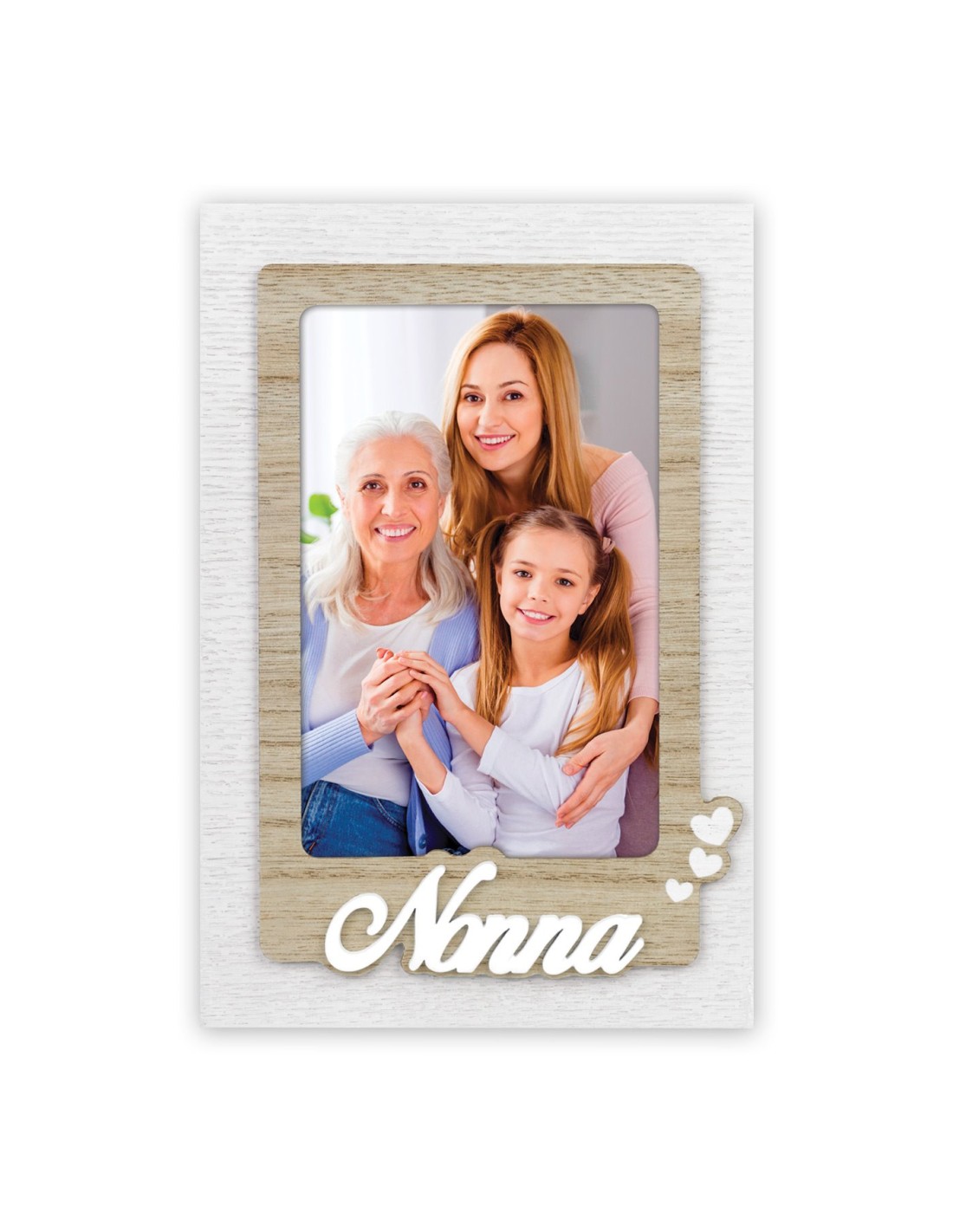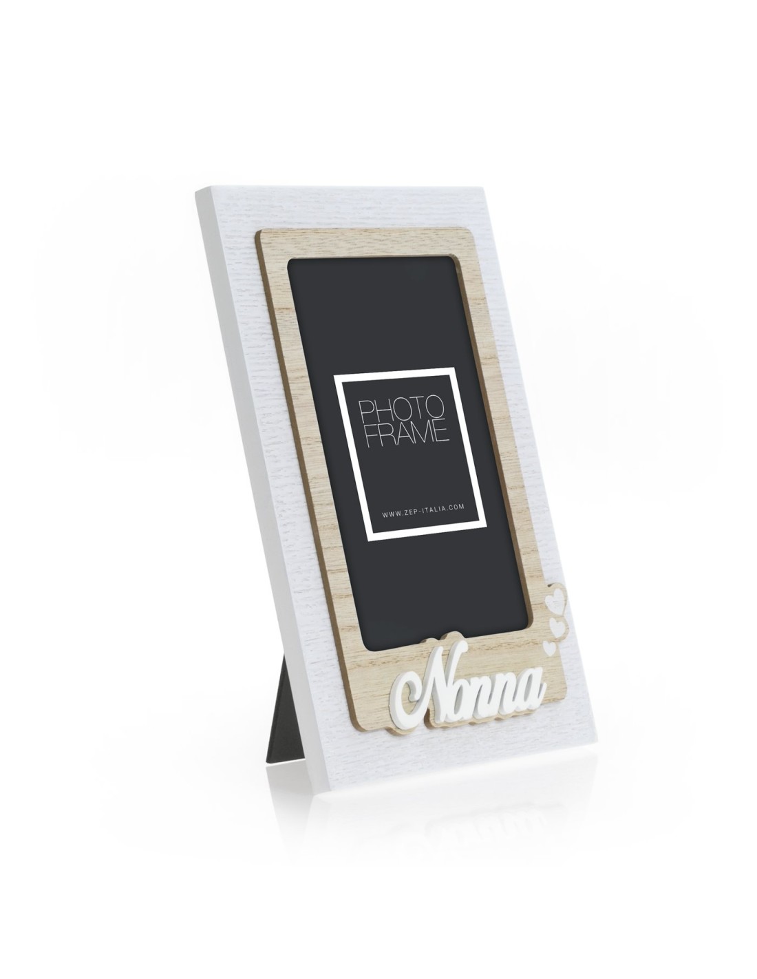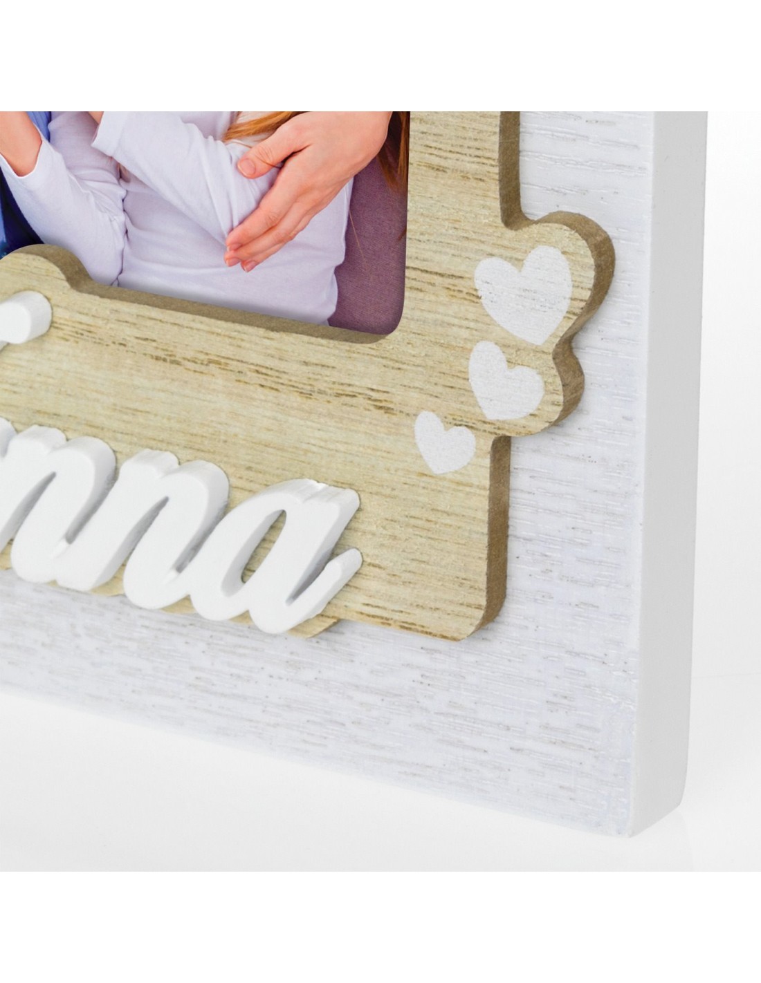 Cornice Sibel Horizontal in legno, colore grigio, con decorazione a forma di cuore in metallo e laccetto in similpelle, da tavolo, adatta al tema dell'amore.