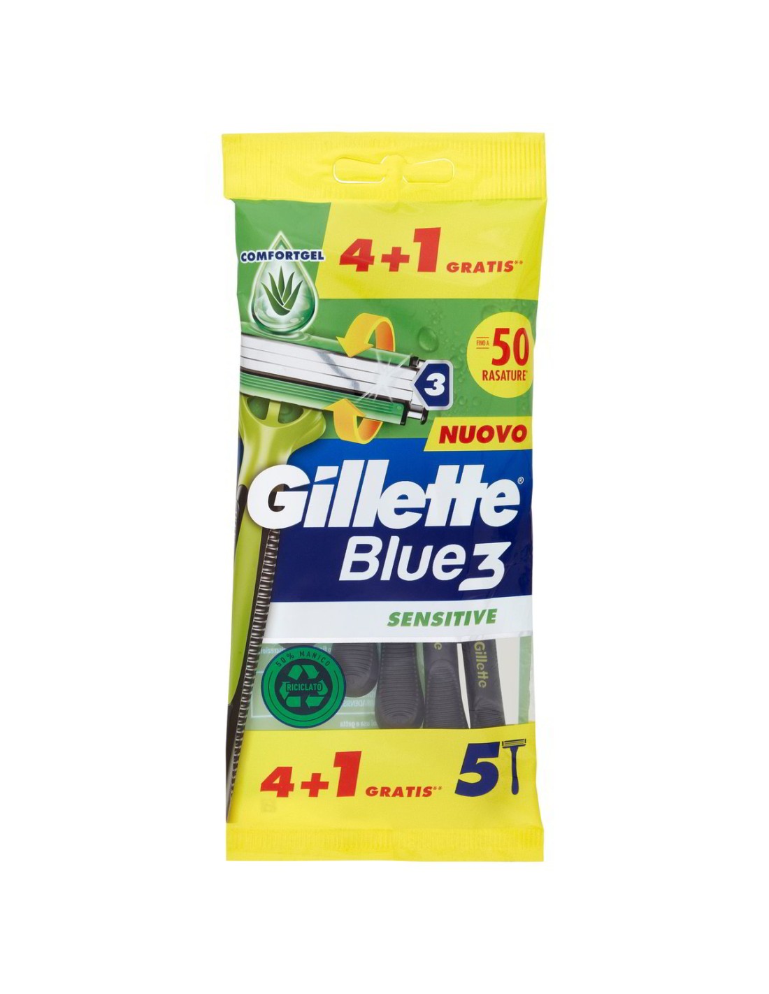 🔥 Mit drei Präzisionsklingen und einem mit Aloe Vera angereicherten Gleitstreifen, gleitet jede Rasur sanft, ohne Rötungen oder Spannungsgefühle zu hinterlassen: ✔ 3 Klingen für eine gründlichere Rasur in weniger Zügen ✔ Lubrastrip-Streifen mit Aloe Vera — 3x mehr Gleitmittel vs. Blue II ✔ 40° schwenkbarer Kopf, der sich jeder Kontur anpasst ✔ EasyGrip Anti-Rutsch-Griff für optimale Kontrolle