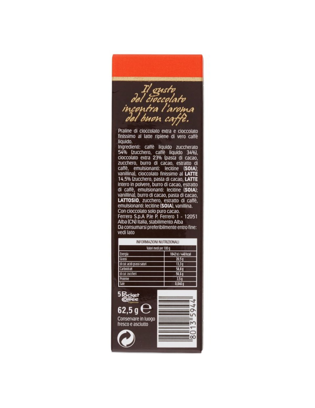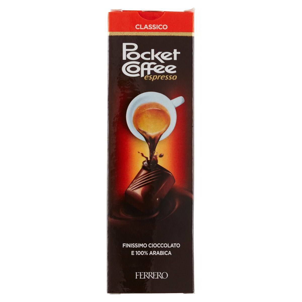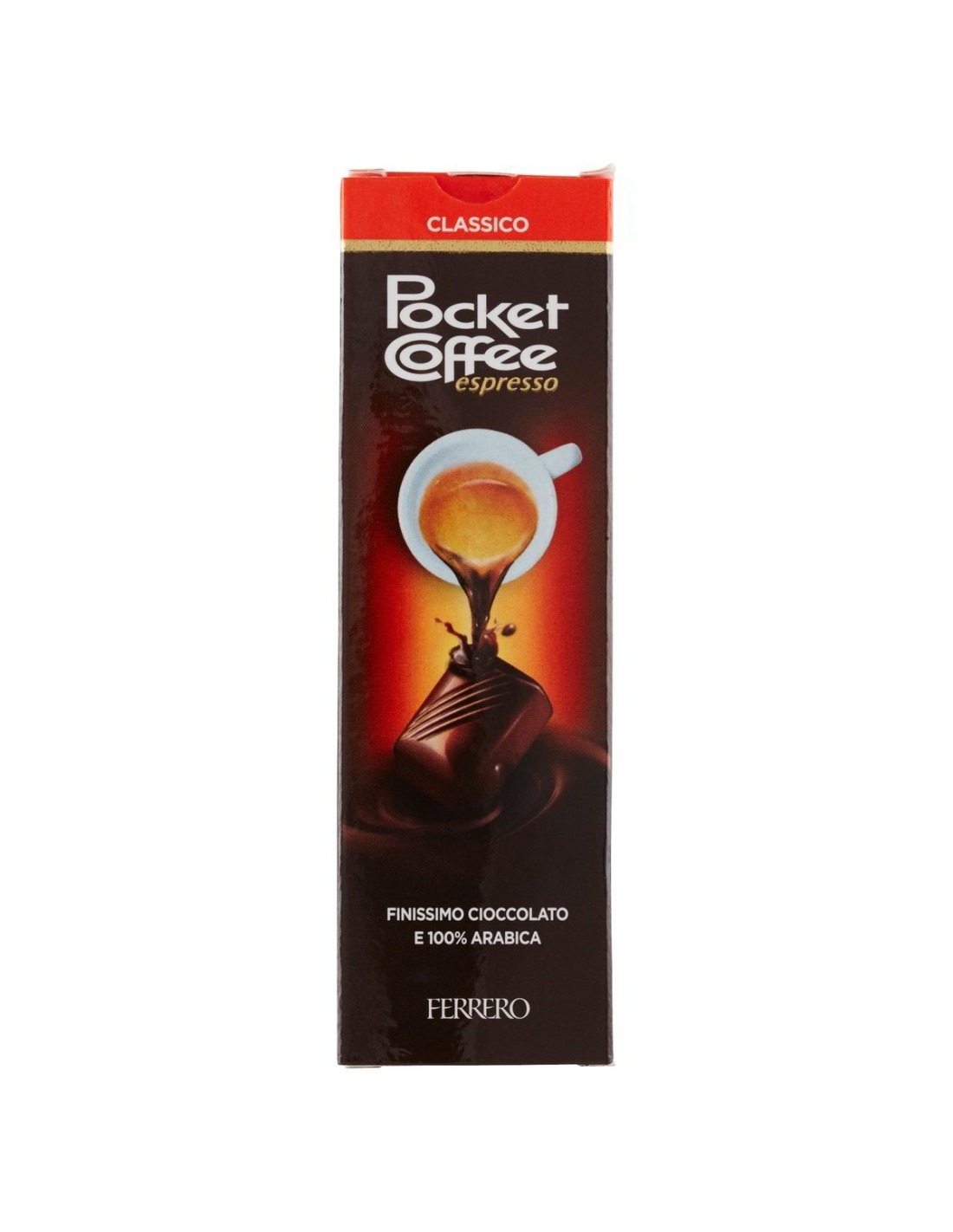 Pocket Coffee Espresso Classico vereint den intensiven Geschmack von Espresso mit der Süße von Zartbitterschokolade. Jeder Bissen enthält eine Mischung aus hochwertigem Espresso, umhüllt von einer Schicht Schokolade, für ein einzigartiges Genusserlebnis. Ideal für eine süße und belebende Pause, perfekt für alle, die Espresso lieben, aber auch eine Prise Süße genießen möchten.