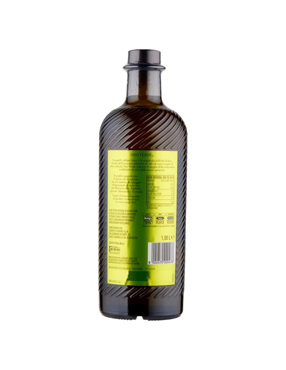 Carapelli Huile d’olive vierge extra Oro Verde 100% Italie 1 L : extraite à froid, au goût fruité, idéale pour assaisonner au quotidien. Disponible sur lowprice.ch