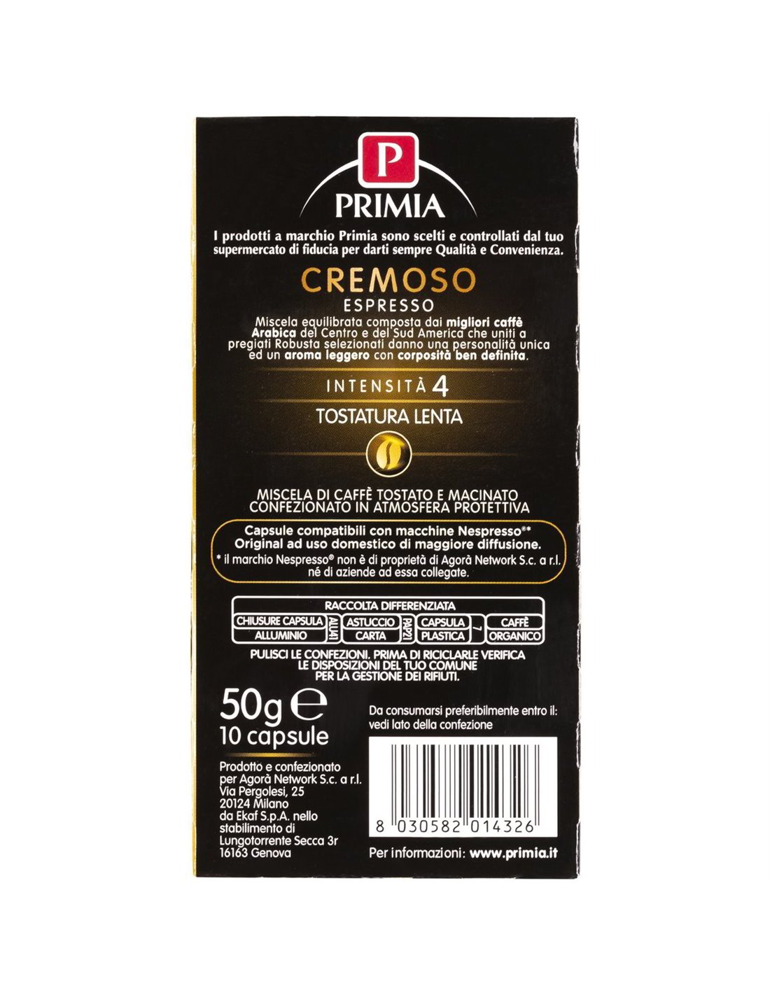 Choisir l'Espresso Cremoso de Primia signifie opter pour un produit qui unit praticité et goût, idéal pour la vie quotidienne. Ces capsules sont conçues pour être compatibles avec les machines Nespresso®* Original, offrant la liberté de savourer un excellent espresso directement chez toi ou au bureau, avec la plus grande facilité. ✔ Chaque capsule assure une dose parfaite pour un café équilibré, avec un goût qui se maintient constant dans le temps grâce au soin apporté à la sélection et au conditionnement. ✔ C'est le choix intelligent pour celui qui ne veut pas renoncer au plaisir d'un bon espresso, recherchant un produit fiable et avec un excellent rapport qualité-prix. ✔ Le soin apporté au mélange et la torréfaction lente confèrent à cette boisson un caractère distinctif, la rendant un point de repère dans la routine de tout amateur de café. 👍