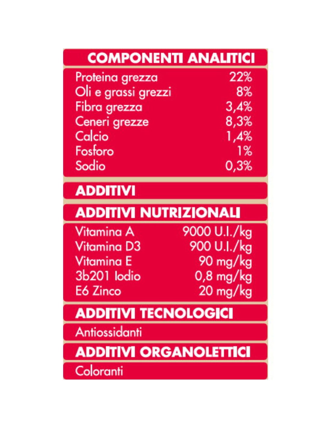 Vitamine A : 9000 U.I./kg