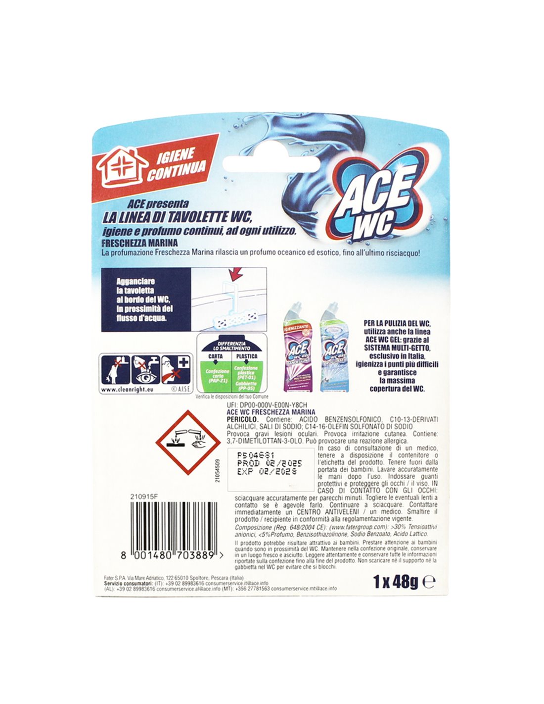 Garantissez à votre salle de bain une hygiène constante et une prévention efficace du tartre avec la tablette WC d'ACE. Sa formule innovante libère une puissante mousse active à chaque chasse d'eau, combattant continuellement la saleté et les bactéries. Contrairement aux désodorisants ordinaires, cette tablette est renforcée par une action anti-calcaire ciblée, qui aide à lutter contre les résidus déjà présents et empêche leur formation, gardant les surfaces lumineuses. Le parfum Fraîcheur Marine diffuse une senteur océanique et exotique qui dure longtemps, assurant un environnement toujours frais et accueillant. Facile à accrocher, cette solution est idéale pour ceux qui recherchent une efficacité maximale avec un minimum d'effort.