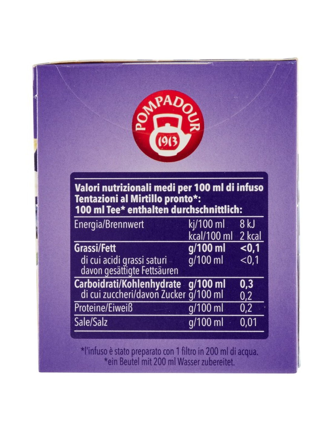 📊 Valeurs Nutritionnelles moyennes pour 100 ml d'infusion prête*