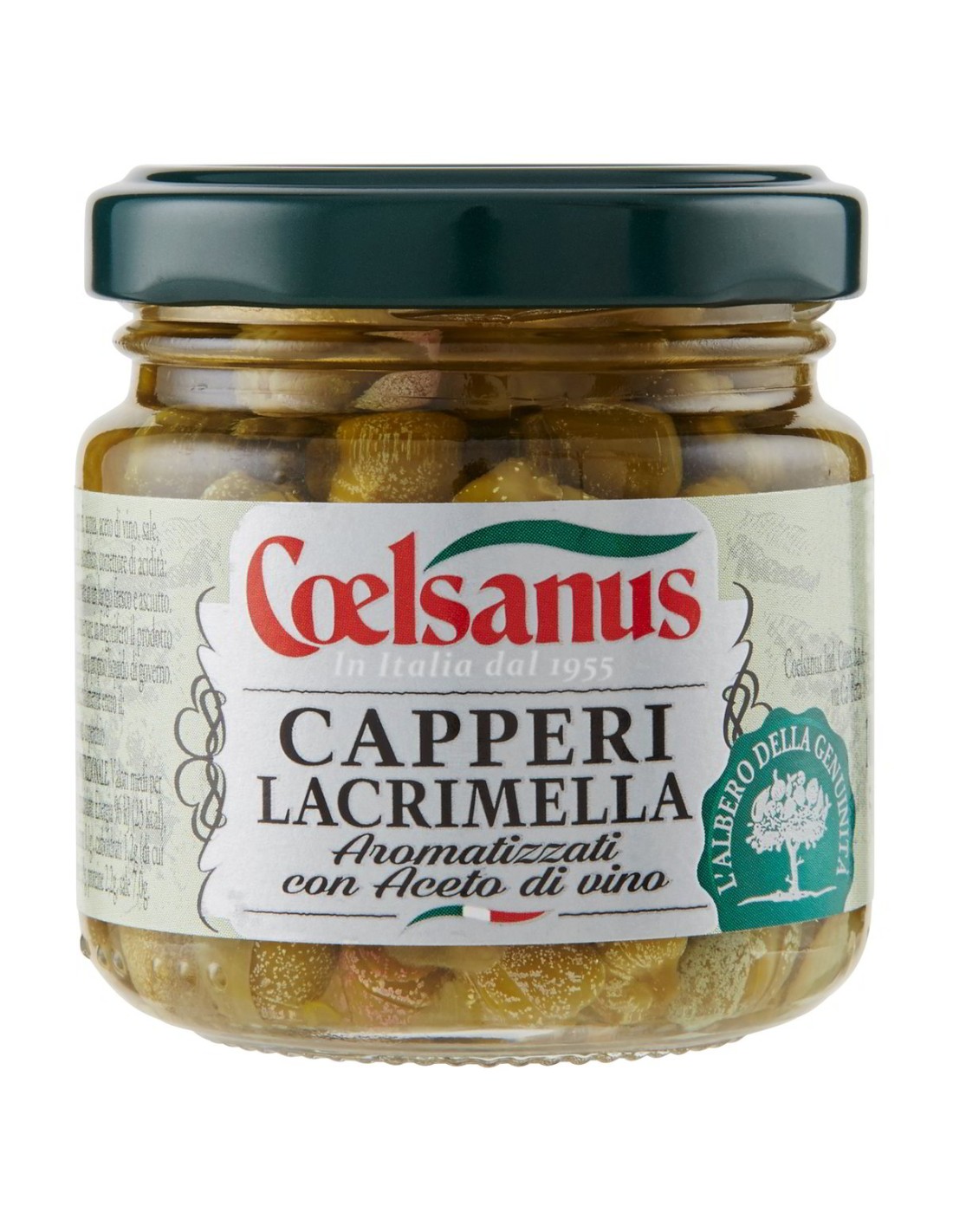 Les Câpres Lacrimella Coelsanus sont parmi les câpres les plus appréciés des connaisseurs : la variété Lacrimella — d'un format petit et uniforme caractéristique — est cueillie à la main au moment de sa plus grande concentration aromatique, avant que le bourgeon ne s'ouvre, garantissant une saveur intense, affirmée et légèrement piquante qui se marie parfaitement à toutes les préparations culinaires. Idéaux pour enrichir pizzas, focaccias, salades de renfort, pâtes à la puttanesca, sauces tartares, bagnacauda et hors-d'œuvre variés, les câpres Coelsanus sont conservés en saumure naturelle qui préserve tout leur arôme et la qualité typique du produit italien.