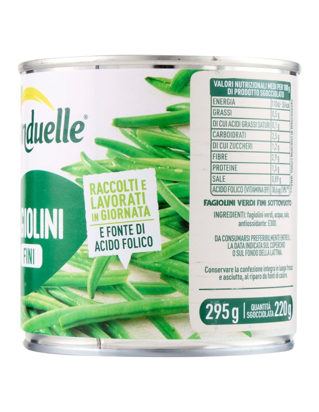 Fagiolini fins Bonduelle 295g sont haricots verts fins vapeur, parfaits pour accompagnements rapides équilibrés. Riche en fibres naturelles, ils se marient viandes, poissons ou pâtes pour repas léger et savoureux en minutes.