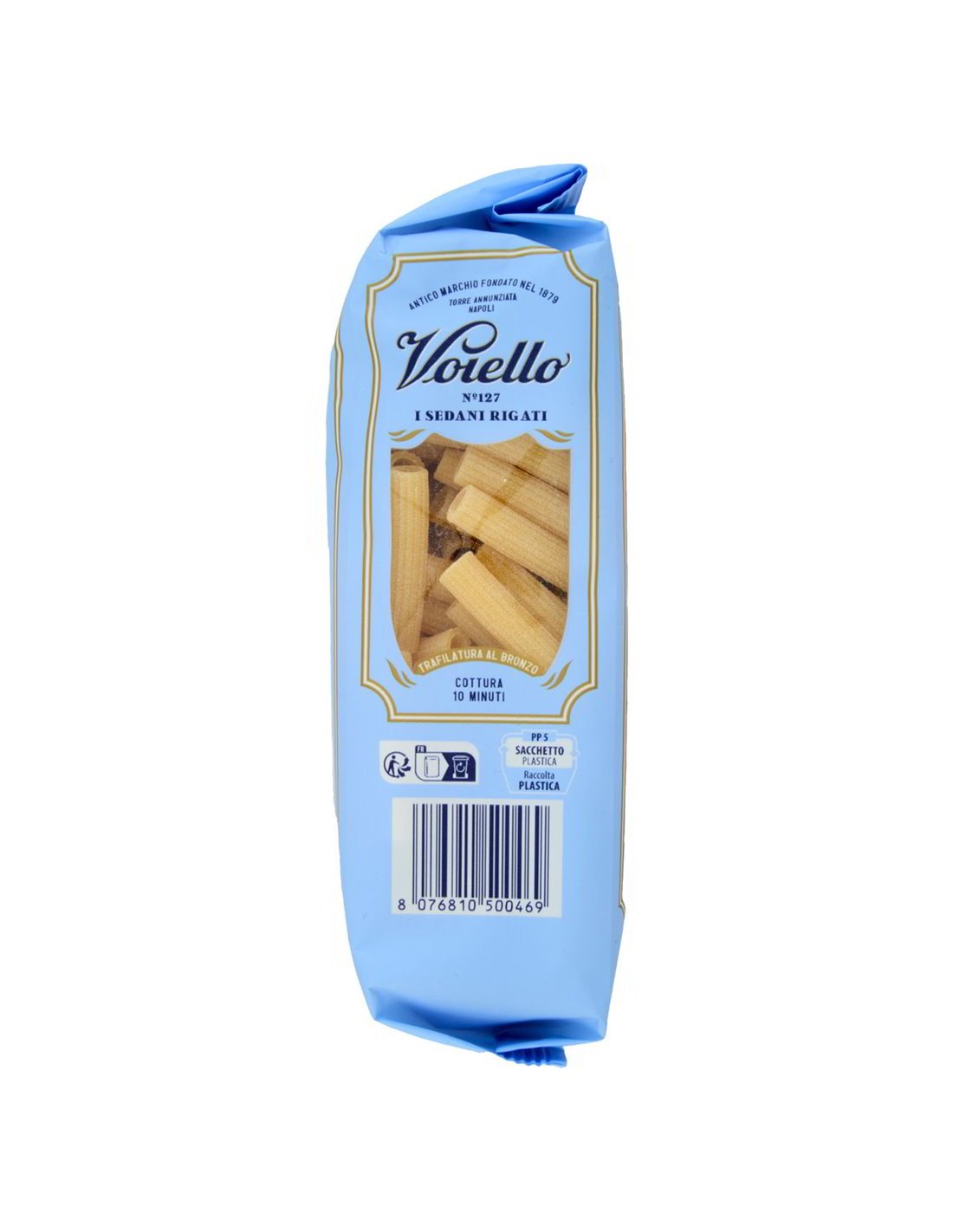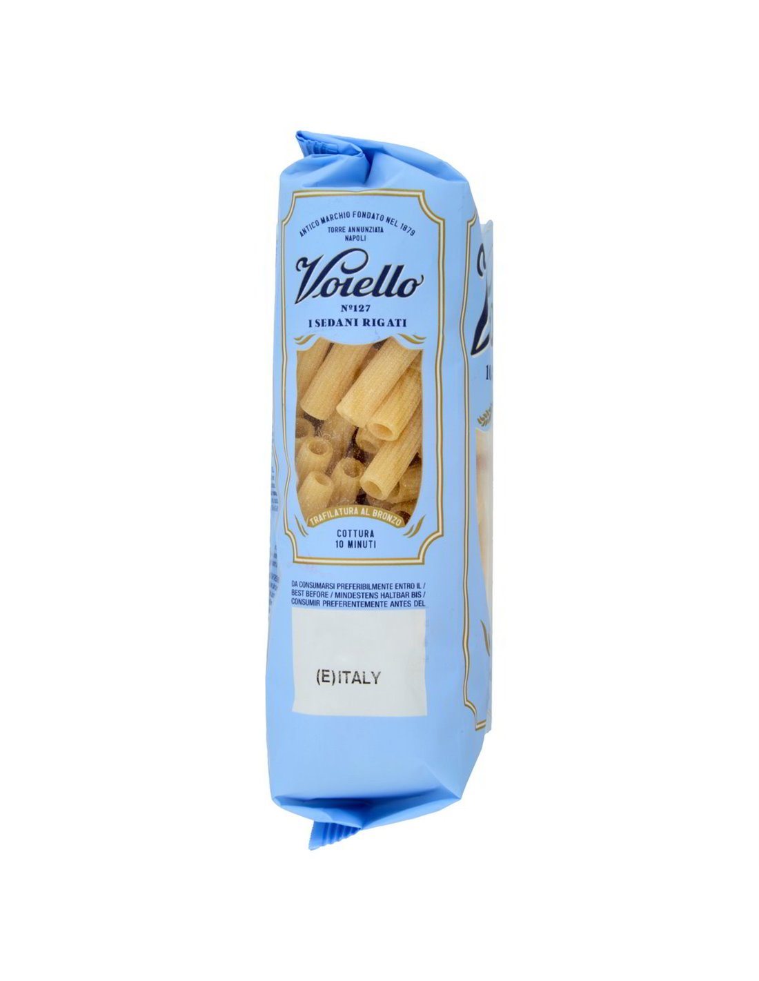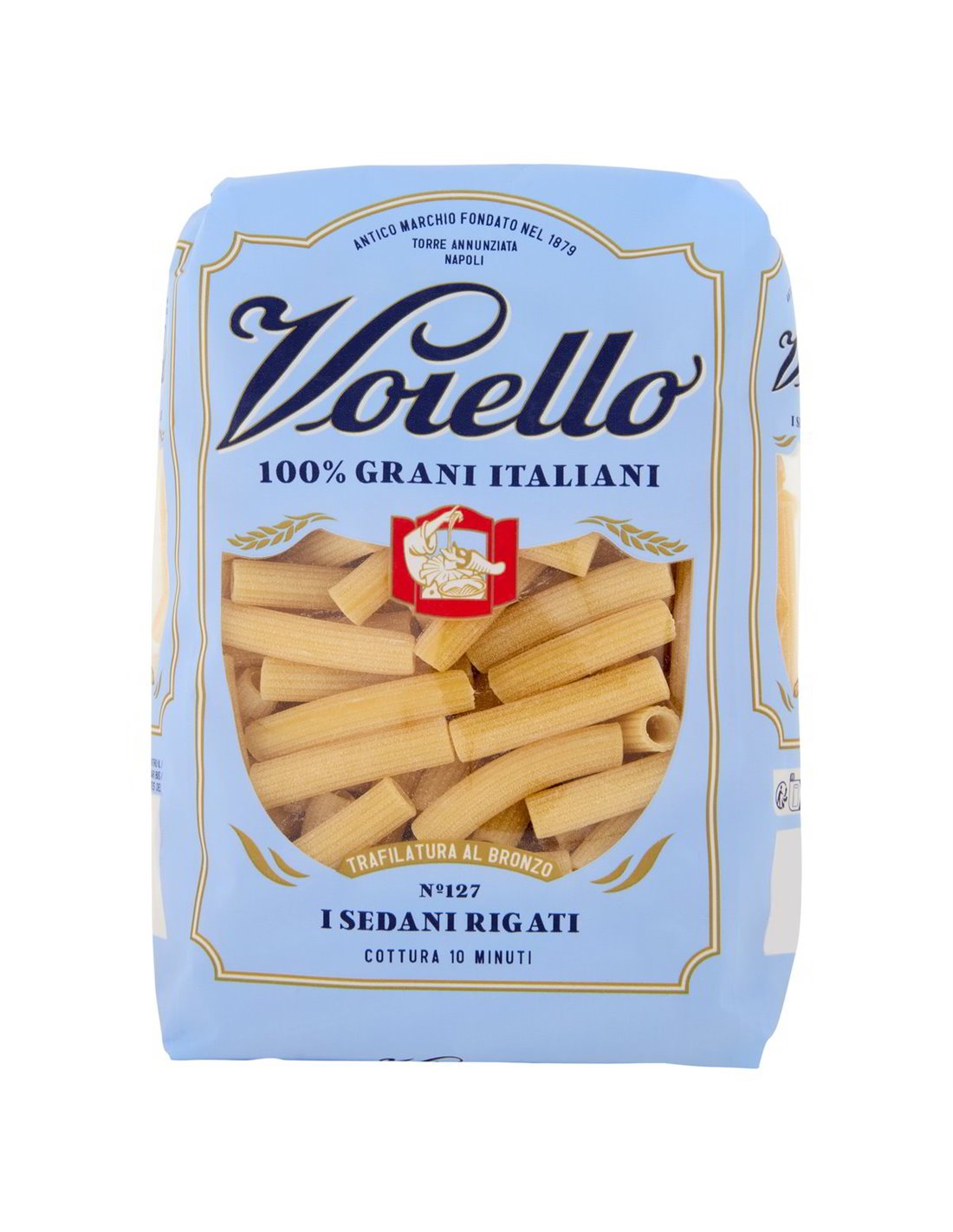 🌸 À Torre Annunziata, au cœur de la Campanie, les pâtes ont toujours été un art transmis de génération en génération. Voiello, marque fondée en 1879, a fait de cette tradition sa raison d'être : chaque format naît d'un choix précis, celui du Blé Doré 100% italien, une variété sélectionnée pour la force extraordinaire du gluten et l'apport protéique élevé, cultivée et moulue entièrement en Italie.