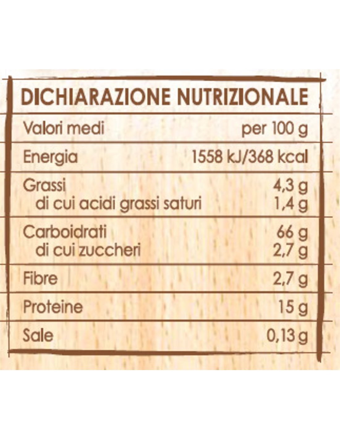 Énergie : 1558 kJ/368 kcal | Graisses : 4,3 g | Saturées : 1,4 g | Glucides : 66 g | Sucres : 2,7 g | Fibres : 2,7 g | Protéines : 15 g | Sel : 0,13 g