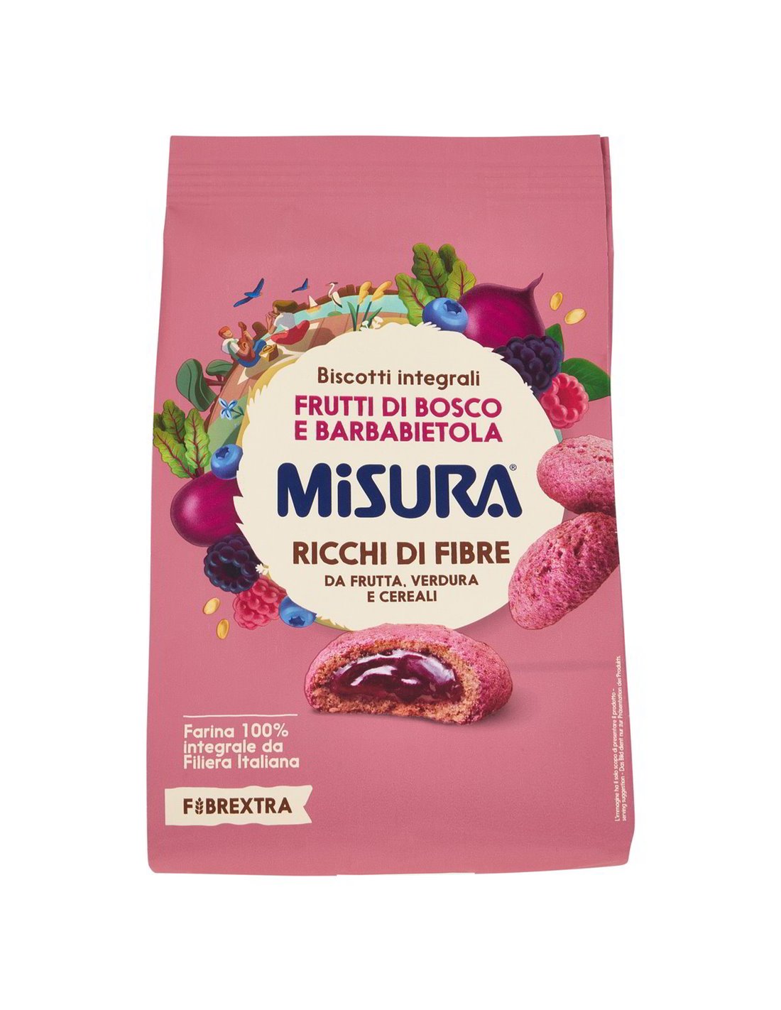 🍋 Depuis que Misura a décidé que le complet pouvait être vraiment gourmand, les Biscuits Fibrextra avec Moelleux aux Fruits Rouges et Betterave sont devenus l'un des petits déjeuners les plus appréciés par ceux qui ne veulent pas renoncer ni au goût ni au bien-être. La recette est simple et transparente : 100% farine complète de blé italien traçable, un mélange de fibres de fruits, de légumes et de céréales, et un cœur moelleux qui révèle toute la bonté des fruits rouges colorés par la betterave.