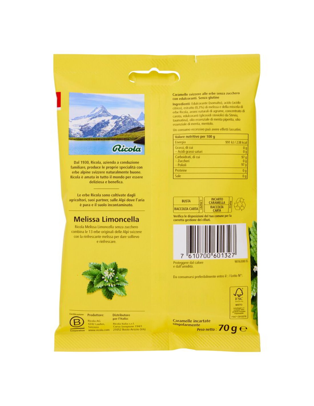 🍋 Ricola Mélisse Citron sans sucre réunit deux mondes en un seul bonbon : la mélisse parfumée, herbe originaire de la Méditerranée orientale appréciée depuis des siècles pour ses propriétés apaisantes, et le puissant mélange de 13 herbes alpines suisses de Ricola. Le résultat est un goût frais et fruité, agréablement agrumé, qui persiste en bouche beaucoup plus longtemps que prévu.
