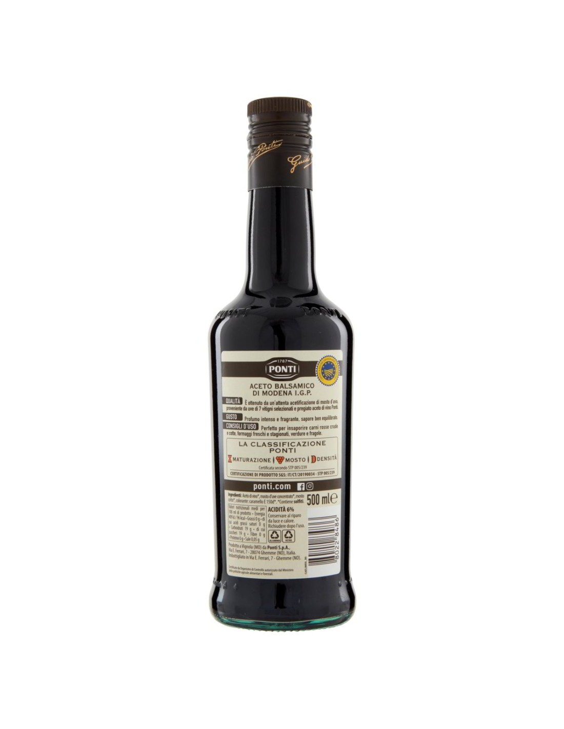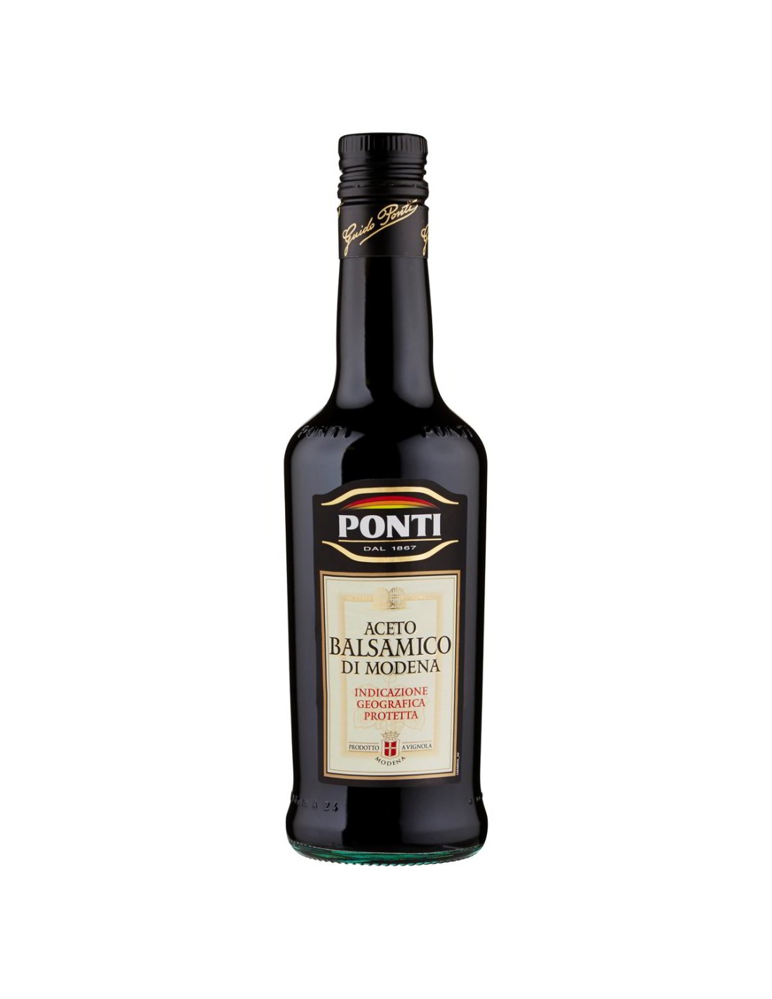 💎 Modène. Un nom, une garantie. Le Vinaigre Balsamique de Modène I.G.P. Ponti naît de l'union de vinaigre de vin de qualité supérieure et de moût de raisin provenant de 7 cépages sélectionnés : le résultat est un condiment au parfum intense et à la saveur aigre-douce, certifié IGP et reconnu dans le monde entier.