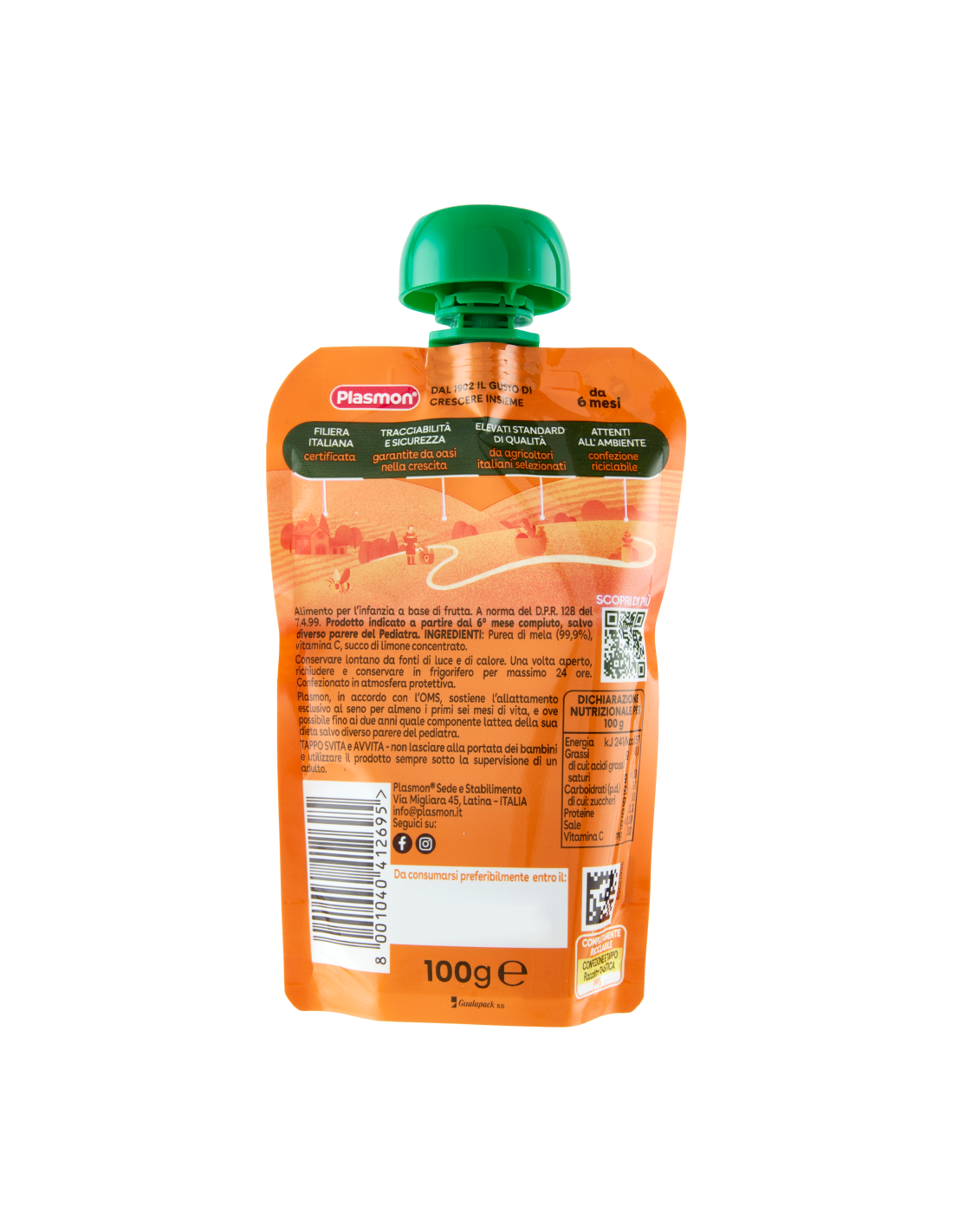 🍏 C'è qualcosa di speciale nella semplicità di una mela. Plasmon 100% Frutta Mela nasce da questa convinzione: che il sapore autentico non ha bisogno di essere migliorato — solo rispettato. Per questo questa merenda contiene praticamente solo mela: italiana, tracciata, certificata.