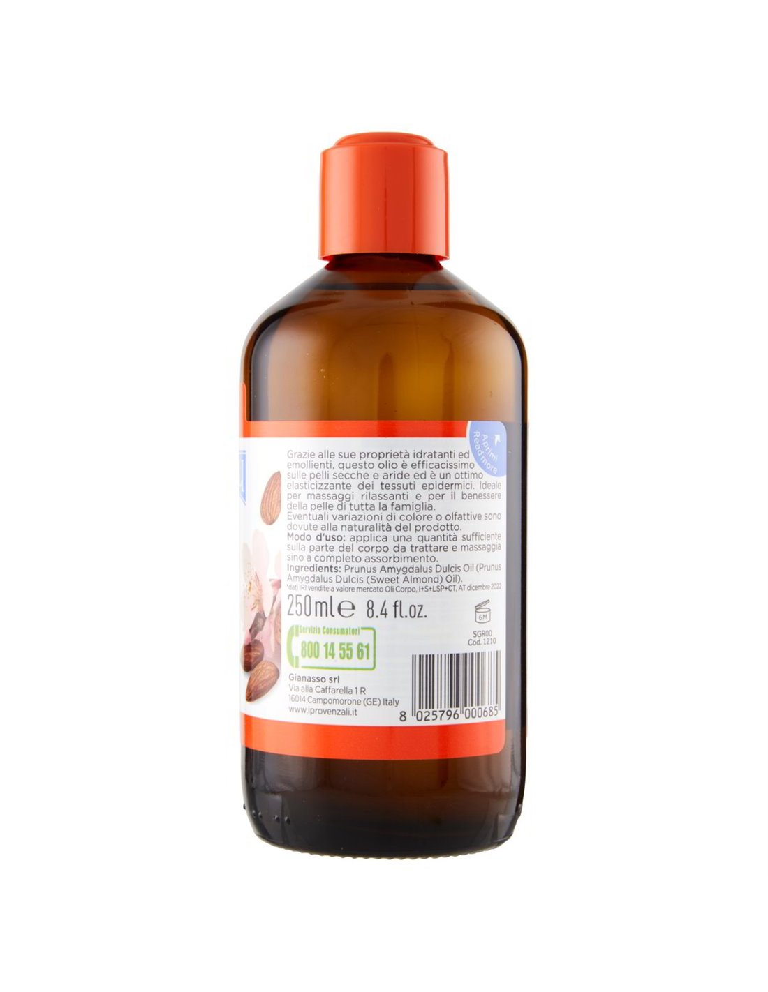 💎 L'olio di mandorle dolci è da secoli uno dei cosmetici naturali più amati perché parla alla pelle in un linguaggio che lei comprende: penetra facilmente, non appesantisce, lascia un senso di morbidezza che dura nel tempo. Grazie alla sua ricchezza in acidi grassi essenziali — in particolare acido oleico e linoleico — migliora progressivamente la plasticità e la tonicità dell'epidermide, rendendola più resistente allo stress cutaneo. Le eventuali variazioni di colore o di odore nel prodotto sono semplicemente il segno autentico della sua naturalità.
