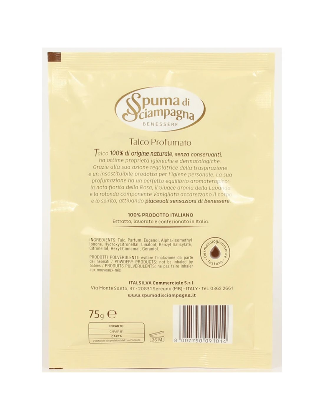 ✔ Produzione interamente italiana, dal talco estratto nelle miniere fino al confezionamento