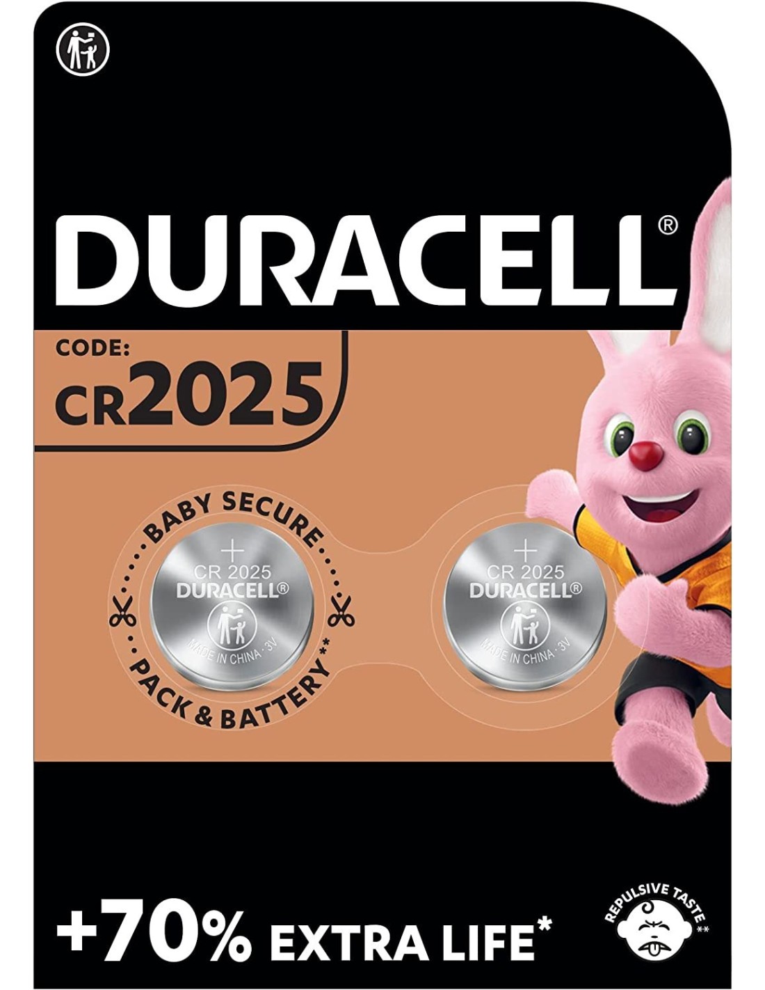 Le batterie Duracell Specialistiche a moneta al litio 2025 sono prodotte con litio ad alta purezza per offrire ai tuoi dispositivi fino al 70% di energia in più* (*rispetto alla durata media minima nel test di rendimento secondo lo standard IEC per le batterie a moneta al litio 2025. I risultati possono variare in base al dispositivo e alle modalità di utilizzo).