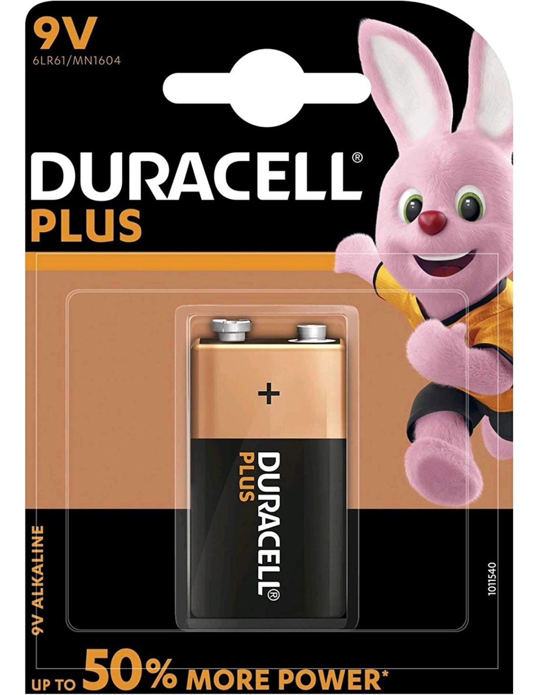 Le batterie Duracell Plus 9V sono batterie alcaline ideali per alimentare tutti i tuoi dispositivi. Le batterie alcaline Duracell Plus 9V offrono il 100% di energia garantita* (*garanzia commerciale rispetto alla durata minima media nei test 2015 IEC sulle batterie da 9 V; i risultati possono variare a seconda del dispositivo e del tipo di utilizzo (sito web IEC)).