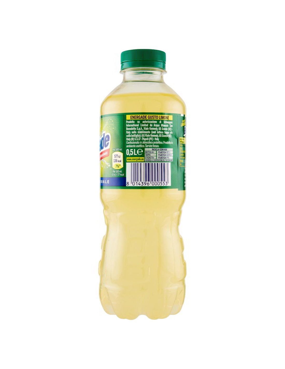 Energade al limone è la scelta ideale per chi desidera recuperare rapidamente idratazione e vitalità. Questa bevanda isotonica è studiata per reintegrare efficacemente i liquidi e i sali minerali essenziali che il corpo perde durante l'attività fisica, le lunghe giornate o semplicemente a causa del caldo. Il suo sapore fresco e leggermente aspro di limone offre un'esperienza rinfrescante ad ogni sorso, aiutandoti a mantenere l'equilibrio idrosalino e a sostenere le tue performance. È perfetta per sportivi, amatori o professionisti, ma anche per chiunque cerchi una bevanda gustosa e funzionale per sentirsi sempre al meglio.
