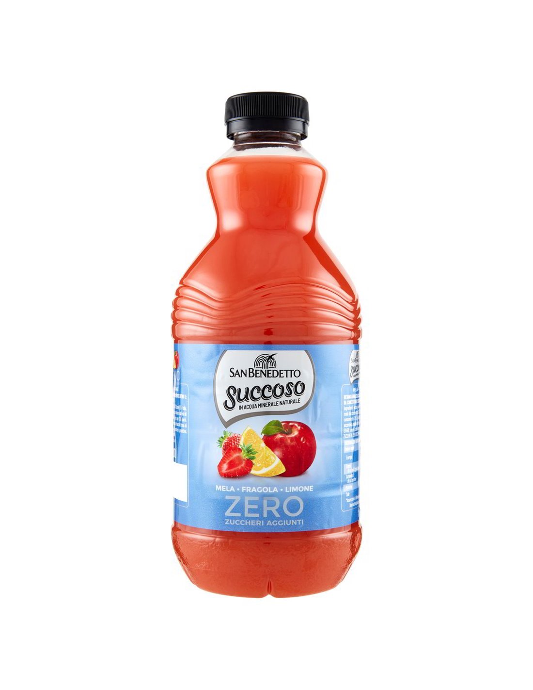 San Benedetto Zero Succoso Mela Fragola Limone unisce la dolcezza della mela, la vivacità della fragola e la freschezza del limone in una bevanda leggera e deliziosa. Perfetta per chi cerca gusto e benessere senza zuccheri aggiunti.