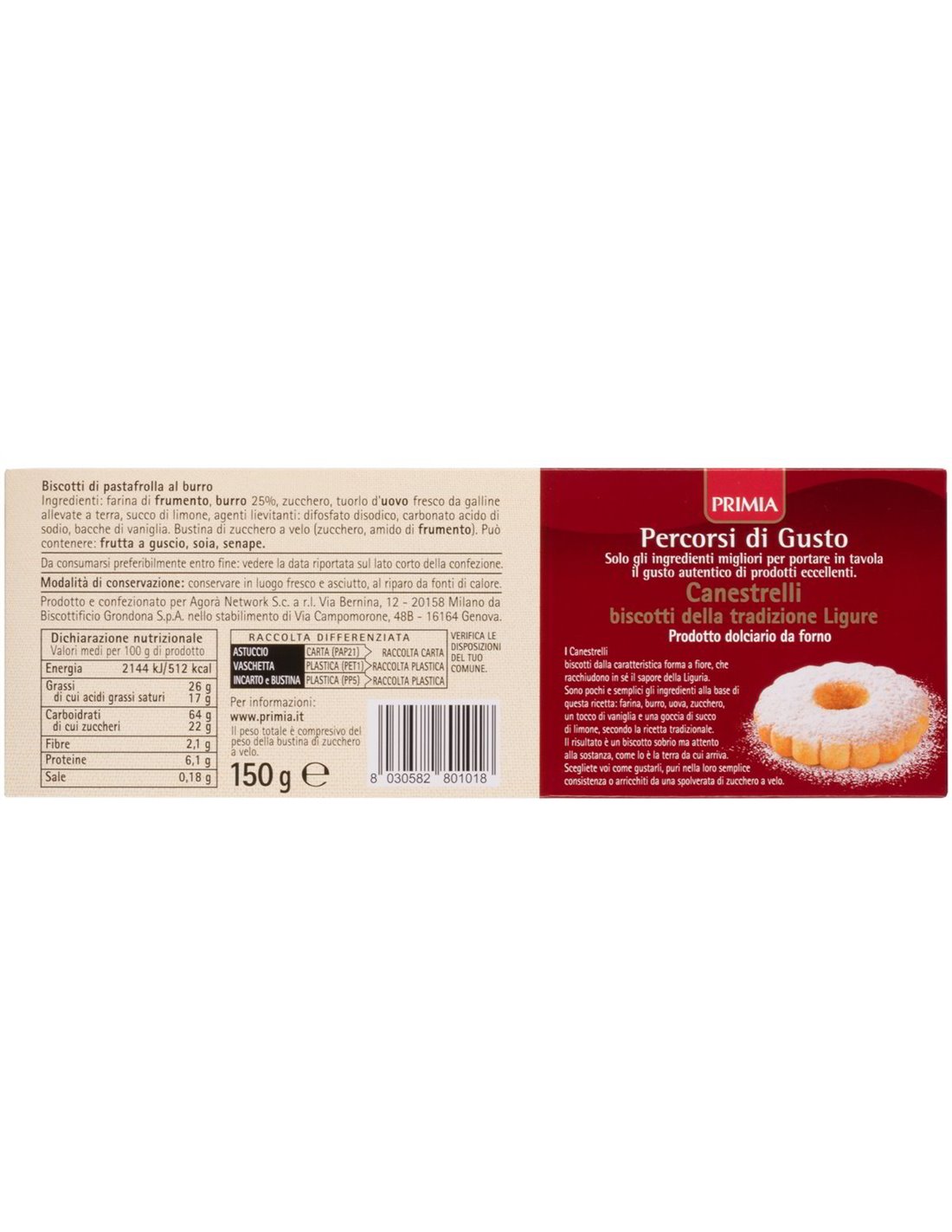 🧠 La linea Percorsi di Gusto Primia nasce dalla volontà di valorizzare i prodotti tipici regionali italiani, selezionando solo eccellenze legate al territorio. I Canestrelli Liguri ne sono uno degli esempi più amati: semplici nella lista degli ingredienti, straordinari nel risultato.