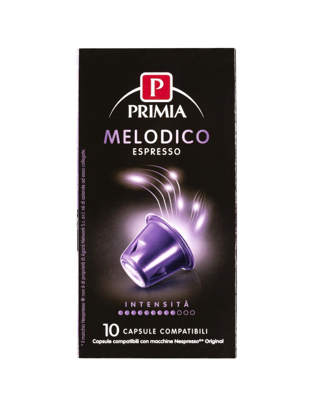 Scegliere il Primia Melodico Espresso significa optare per una qualità costante e un'esperienza gustativa affidabile, giorno dopo giorno. Le capsule compatibili con le macchine Nespresso** Original* ad uso domestico offrono la massima praticità, permettendoti di gustare un espresso professionale direttamente a casa tua.