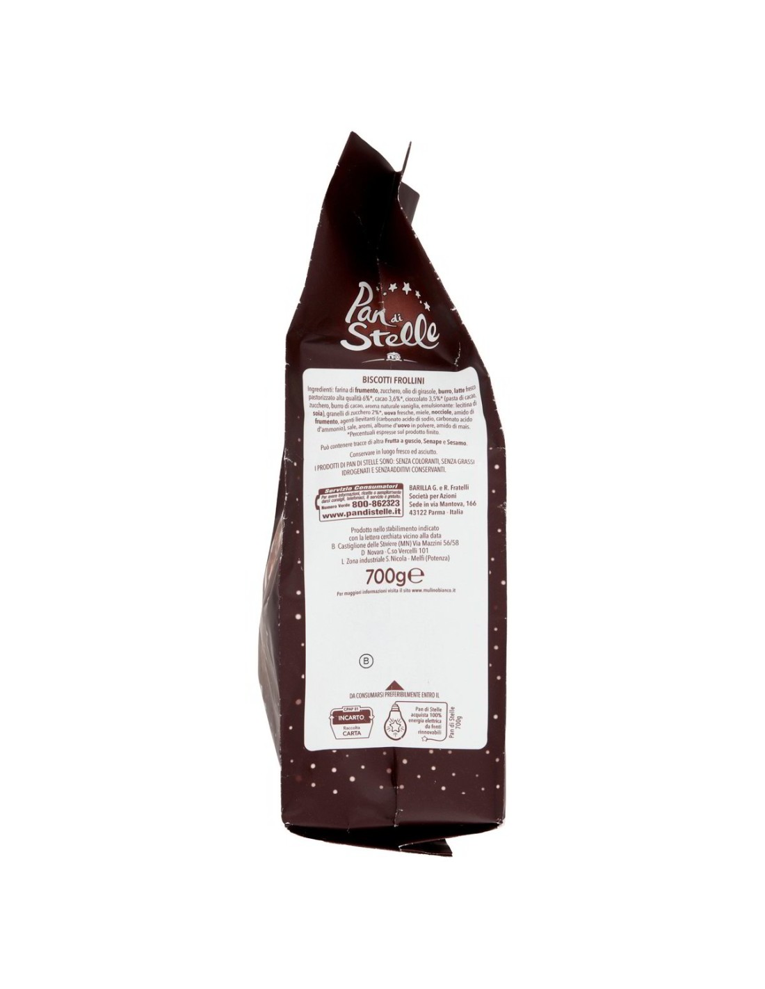 💎 Alcuni piaceri meritano un formato all'altezza. Pan di Stelle 700g nasce per chi vuole più colazioni da sogno, più pause golose condivise, più momenti stellati in famiglia. Stessa ricetta inimitabile del biscotto classico — cacao, latte fresco, nocciole italiane, glassa a stelle — solo in una confezione più grande per non restare mai senza.