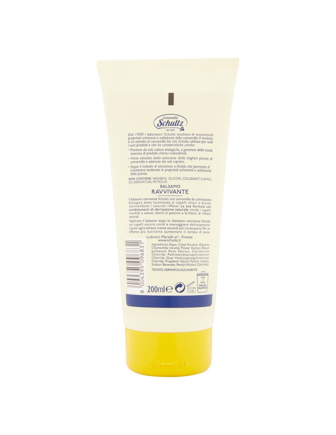 Schultz è un marchio della tradizione italiana nella cura capillare naturale. L'estratto di camomilla biologica — ingrediente chiave della formula — è noto da secoli per la sua azione schiarente e illuminante sui capelli chiari. Abbinato all'estratto di Rheum Palmatum, dona un'azione ravvivante che esalta i riflessi dorati in modo progressivo e naturale.