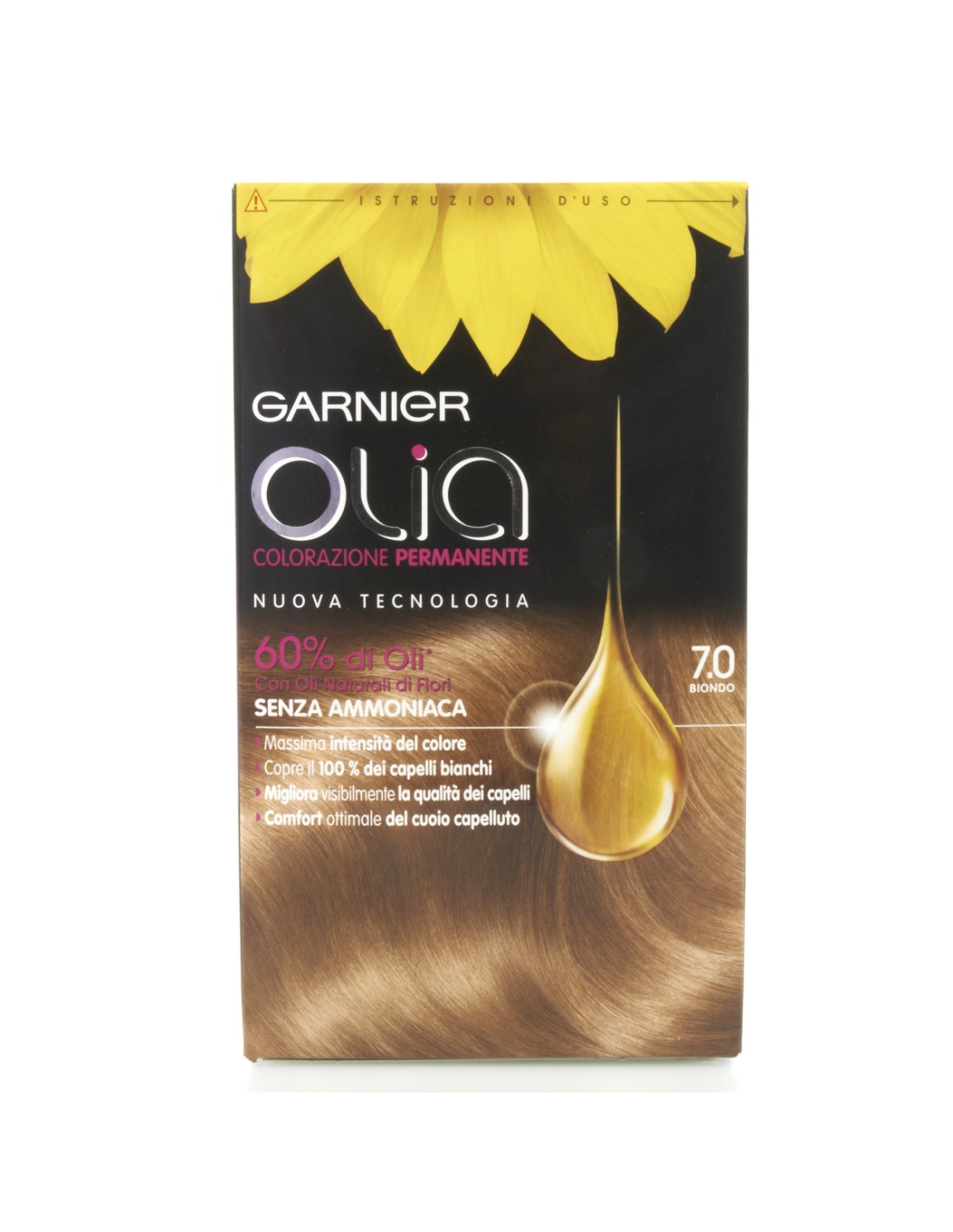 🔥 Finalmente un biondo brillante come non mai, senza il sacrificio dell'ammoniaca. Garnier Olia 7.0 Biondo rivoluziona la colorazione permanente grazie alla tecnologia ODS: il 60% di oli naturali di fiori nel cuore della formula diffonde il colore fino alla fibra più profonda, regalando una chioma luminosa e nutrìta.