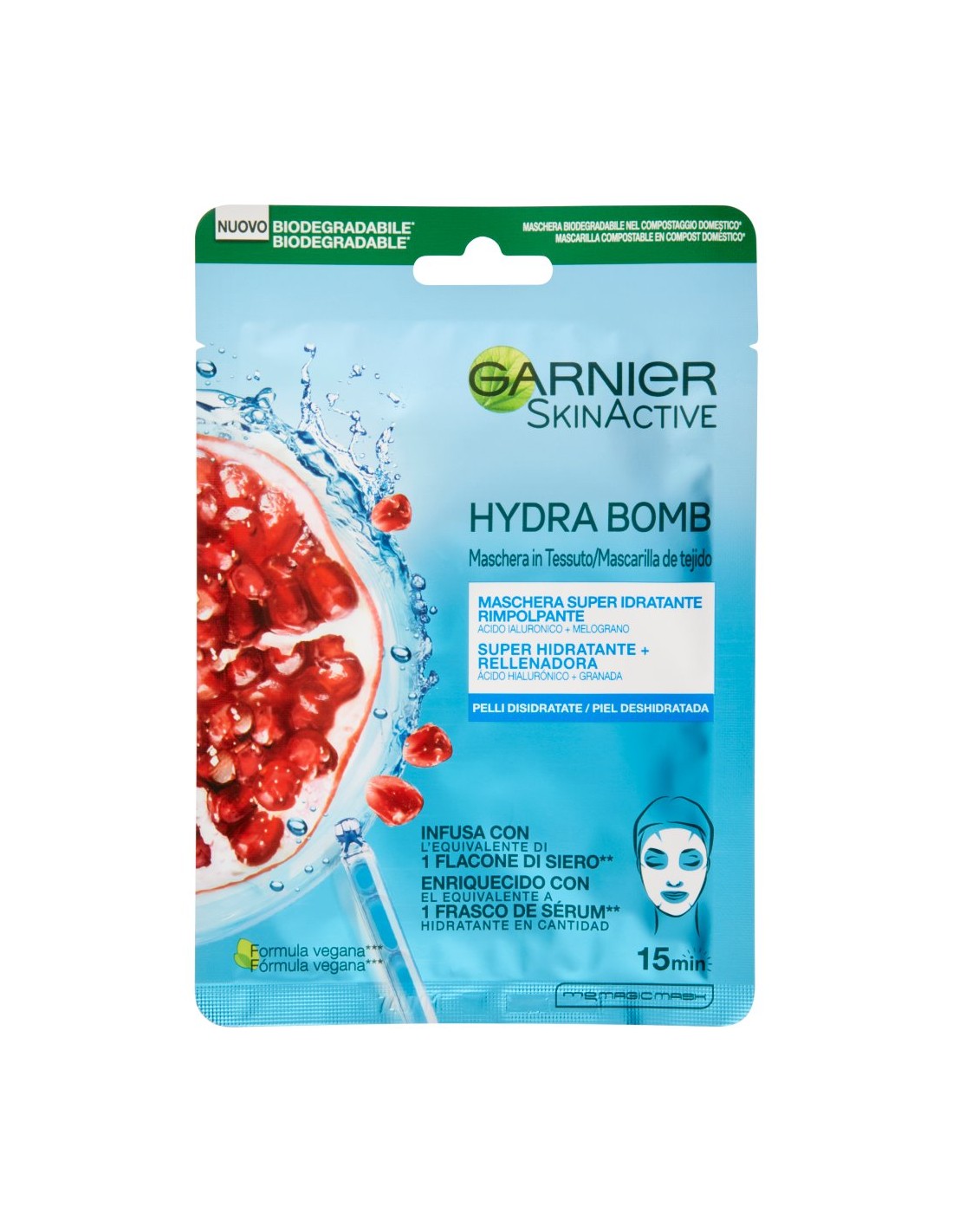 🔥 Immagina 15 minuti di pura vitalità per il tuo viso: la Garnier Hydra Bomb Maschera in Tessuto al Melograno è una vera bomba di energia e idratazione, formulata per rimpolpare e illuminare le pelli disidratate.