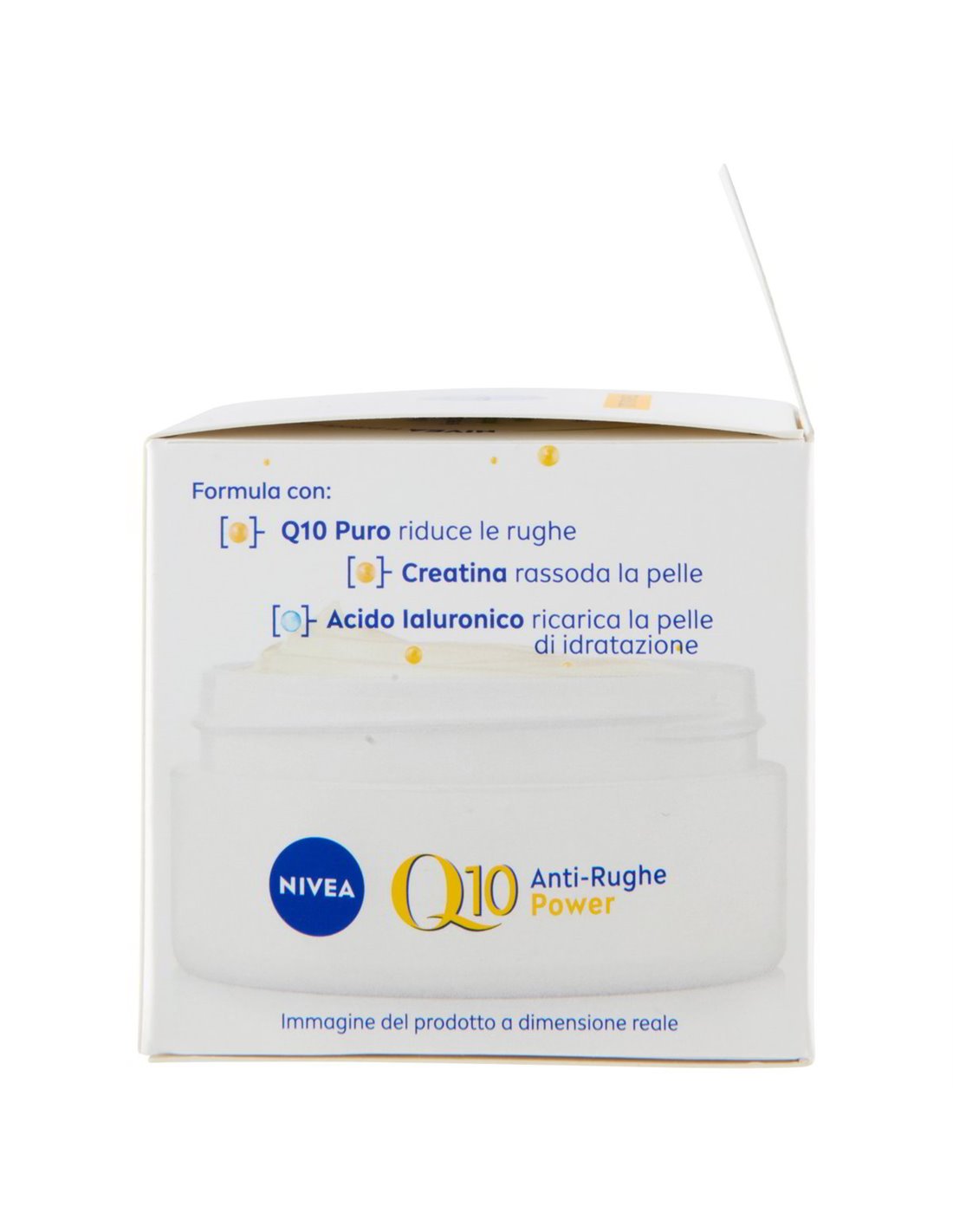 🔥 Al centro della formula c'è il Q10 Puro di NIVEA — bioidentico al Coenzima Q10 naturalmente presente nella pelle. Insieme alla Creatina, energizza le cellule e stimola la produzione di collagene dall'interno. Il brevettato Glycostop® completa l'azione, potenziando la resistenza della pelle ai segni del tempo. Ogni applicazione mattutina è un investimento nella tua pelle di domani.