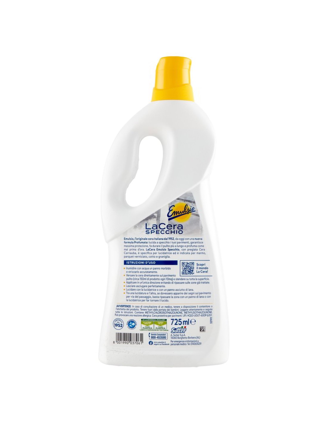 - Emulsio La Cera Specchio è una cera lucidante specificamente formulata per pavimenti che desideri far brillare come uno specchio.