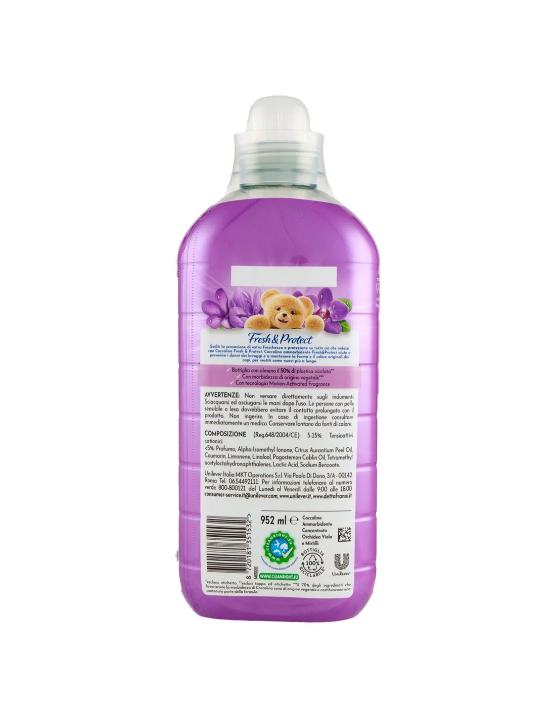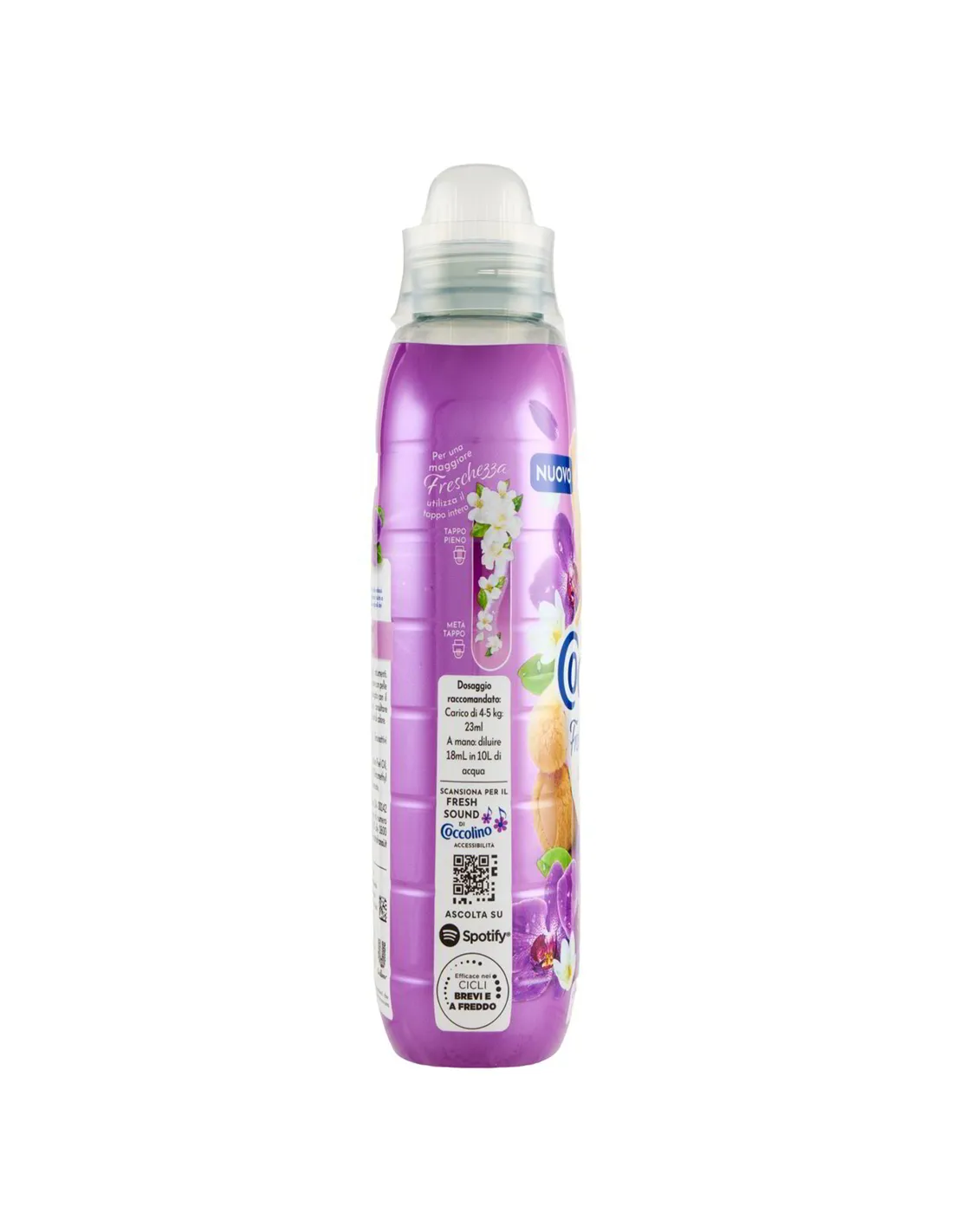 Coccolino Ammorbidente Concentrato Orchidea Viola e Mirtilli regala ai tuoi capi una morbidezza eccezionale e un profumo delicato ma avvolgente. La sua formula concentrata nutre i tessuti, facilitando la stiratura e mantenendo una freschezza che dura a lungo. Il profumo di orchidea viola e mirtilli trasforma ogni lavaggio in un'esperienza sensoriale unica, lasciando i vestiti morbidi e piacevolmente profumati.