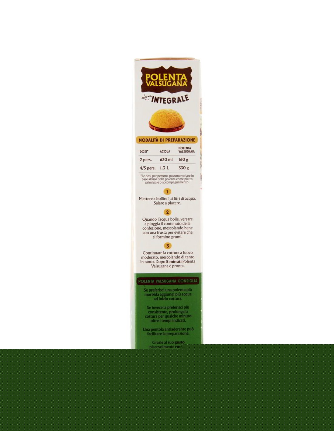 💎 Rustica, ricca, autentica. Polenta Valsugana L'Integrale è fatta con un solo ingrediente: farina integrale di mais, ottenuta dalla macinazione dei chicchi interi per conservare crusca, fibre e tutto il gusto naturale del mais italiano.
