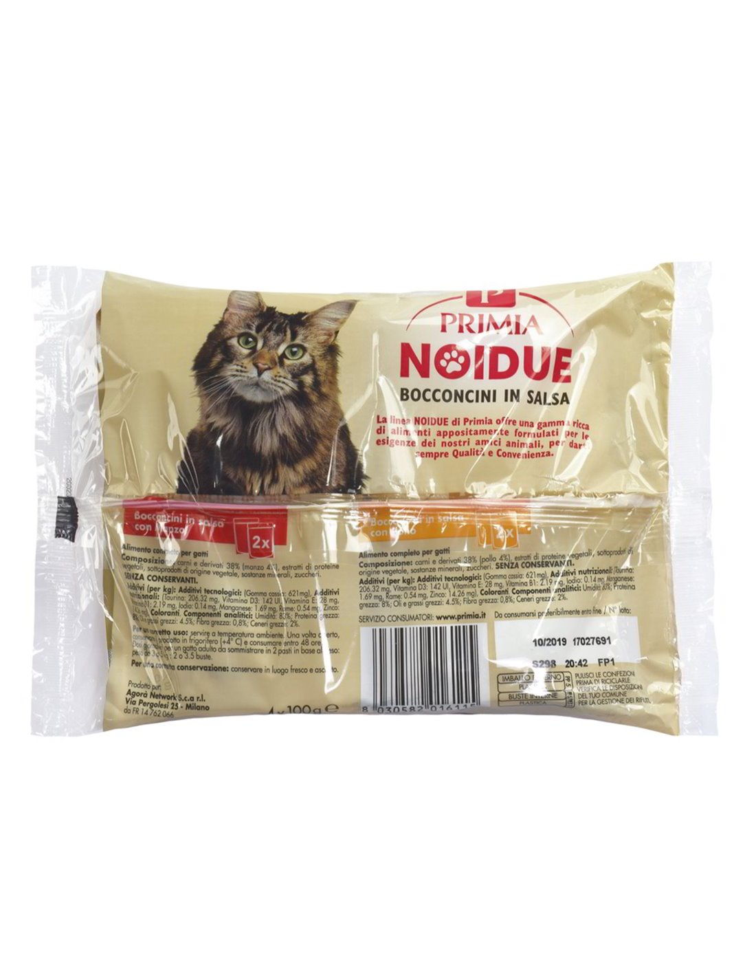 Scegliere Primia Noidue Bocconcini in Salsa significa affidarsi a un marchio che comprende il legame speciale con il tuo gatto, offrendo un pasto che è sinonimo di amore, cura e fiducia reciproca in ogni bustina. 💖
