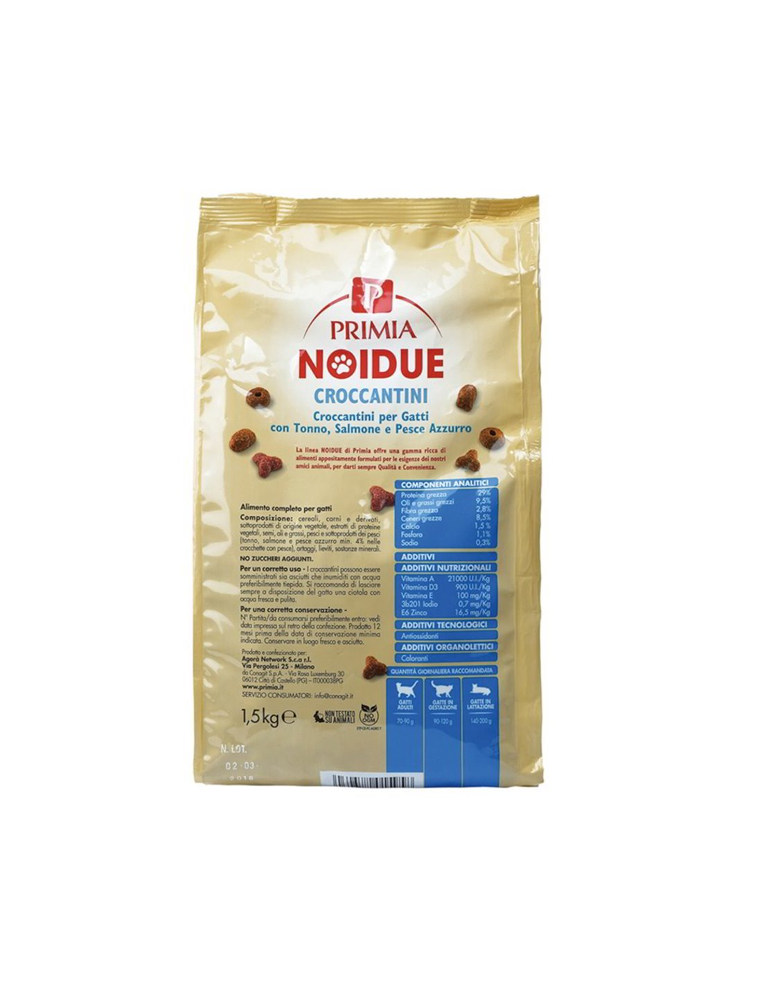 I croccantini PRIMIA NOIDUE sono il risultato di una ricerca attenta, volta a creare un alimento che unisca il gusto irresistibile a una composizione equilibrata. L'obiettivo è offrire al tuo gatto una dieta completa che lo accompagni in ogni fase della sua vita, sostenendone le funzioni vitali e promuovendo una salute radiosa. Ogni ingrediente è selezionato con cura, garantendo una provenienza affidabile e una qualità costante. Con PRIMIA, dai al tuo gatto non solo un pasto, ma un gesto di profonda cura. 💪