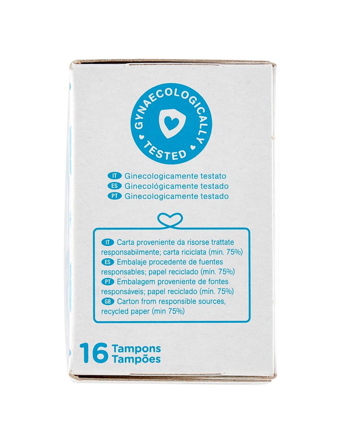 Leggere attentamente il foglietto illustrativo prima dell'uso. Contiene informazioni essenziali sulla Sindrome da Shock Tossico (TSS). Non superare le 8 ore di utilizzo consecutivo. In caso di febbre alta, nausea o altri sintomi insoliti durante l'uso, rimuovere immediatamente il tampone e rivolgersi a un medico.