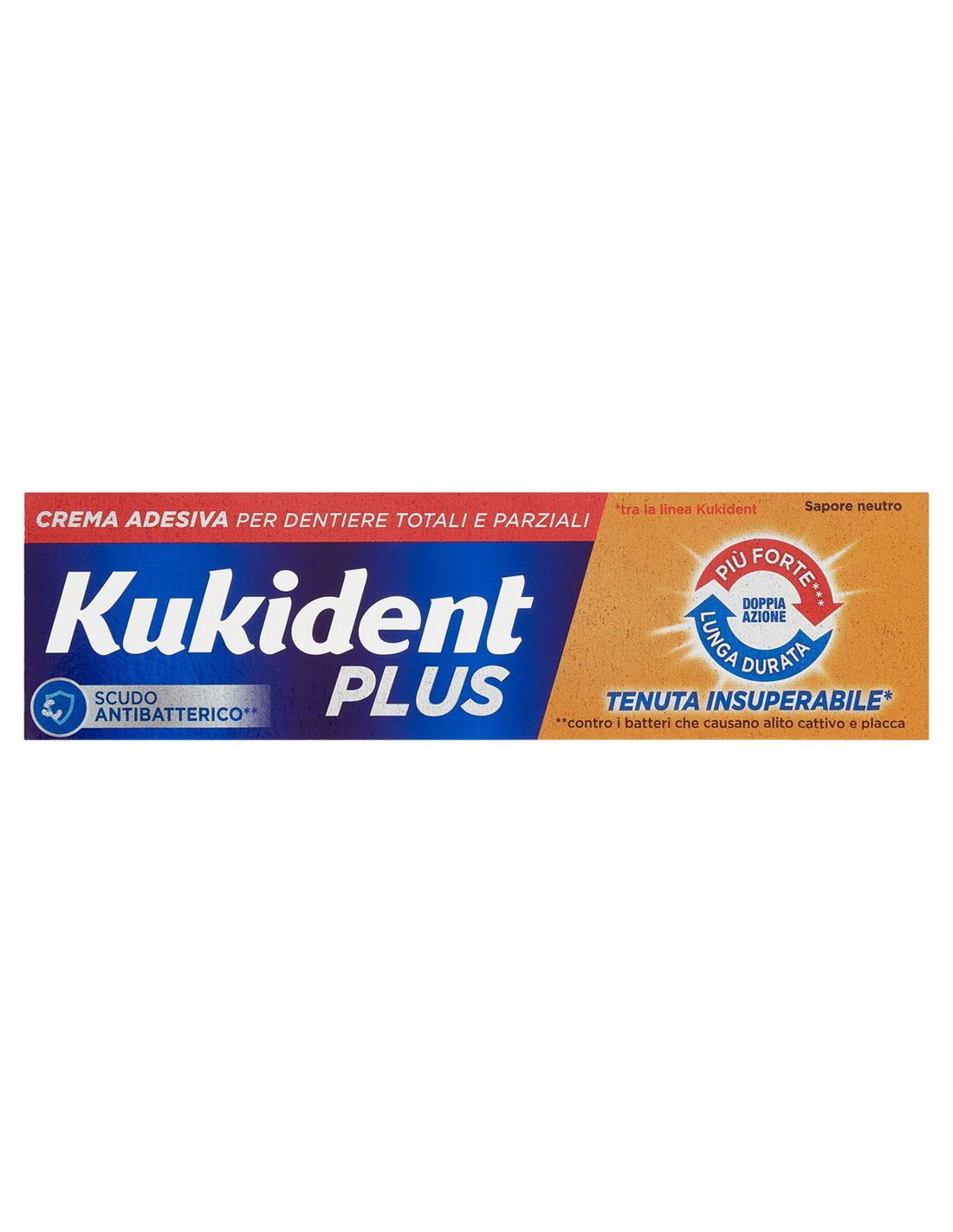 🎯 Due azioni, una sola applicazione. Kukident Plus Doppia Azione è la crema adesiva che si attiva rapidamente e poi rilascia gradualmente la sua forza adesiva per tutto il giorno — senza cedimenti, senza sorprese.