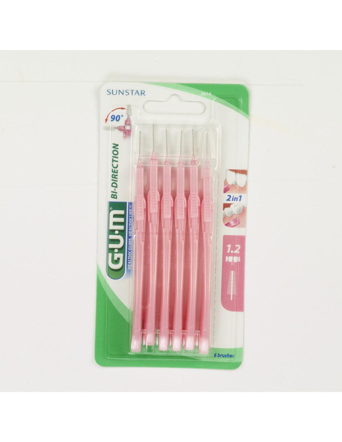 👂 Raggiungere i denti posteriori con uno scovolino tradizionale può essere una vera impresa. Il GUM Bi-Direction 1,2 mm risolve tutto con un'idea brillante: la testina ruota di 90° scattando in due posizioni, dritta per i denti anteriori e ad "L" per i posteriori.