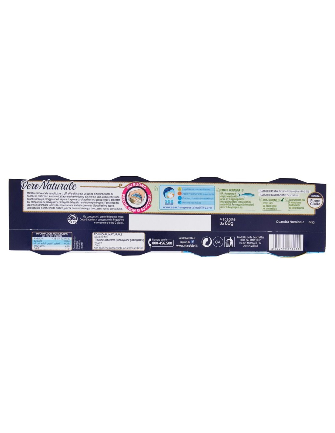 Più buono perché non si sgocciola Mareblu reinventa la semplicità e ti offre VeroNaturale, un tonno al Naturale ricco di bontà e di praticità. La nuova ricetta prevede solo tonno al naturale, sale, una piccolissima quantità d'acqua e l'aggiunta di vapore. La presenza di pochissima acqua rende il prodotto più compatto e ne salvaguarda l'integrità del gusto rendendolo più buono; l'aggiunta del vapore ne garantisce inoltre la conservazione anche in presenza di pochissima acqua. VeroNaturale è anche molto pratico, poiché non avendo acqua in eccesso, non va sgocciolato. seaChange Legalità e sicurezza sul lavoro Approvvigionamento responsabile Processi di produzione sostenibili Persone e comunità www.seachangesustainability.org Tonno di provenienza FIP FIP: Programma di miglioramento della pesca per il raggiungimento delle più importanti certificazione di sostenibilità. Per maggiori informazioni vai su: fisheryprogress.org 100% Tracciabilità Scopri tutto sul nostro tonno: vai su www.mareblu.it Lavoriamo con cura il nostro tonno direttamente sul luogo di pesca