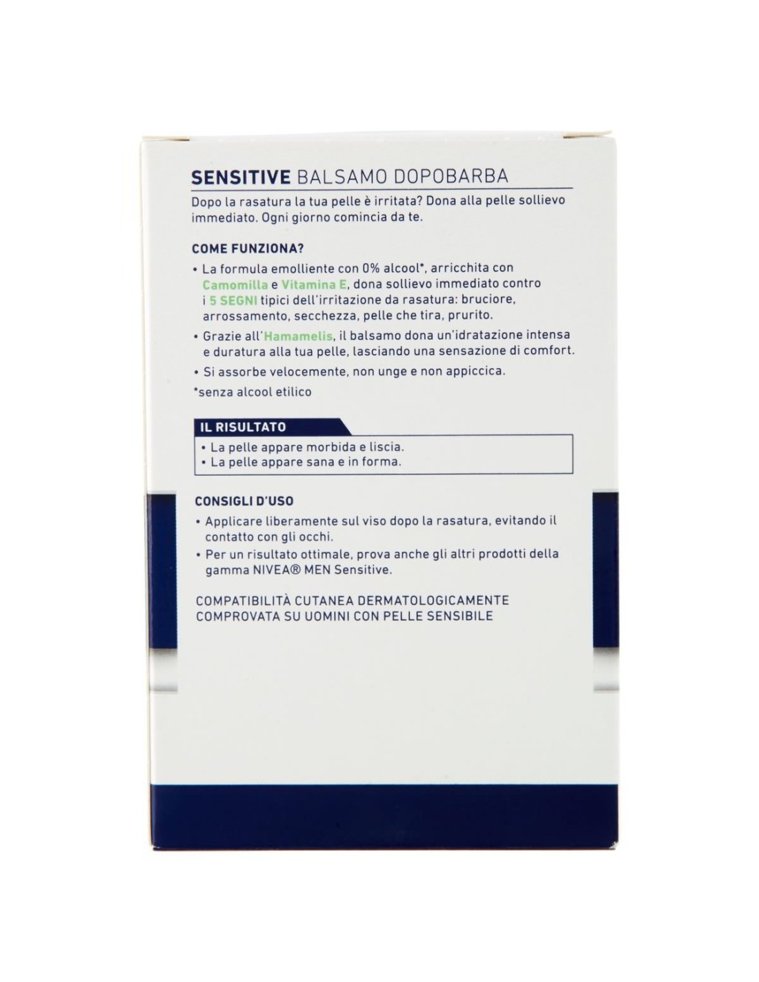 👂 Ogni mattina, dopo la rasatura, la tua pelle affronta una vera e propria sfida. Il rasoio rimuove non solo i peli, ma anche lo strato più superficiale della pelle, rendendola vulnerabile a bruciore, arrossamenti e secchezza. NIVEA MEN Sensitive Balsamo Dopobarba nasce per rispondere esattamente a questo momento: una formula sviluppata da Beiersdorf — oltre 130 anni di ricerca dermatologica — pensata specificamente per gli uomini con pelle sensibile.